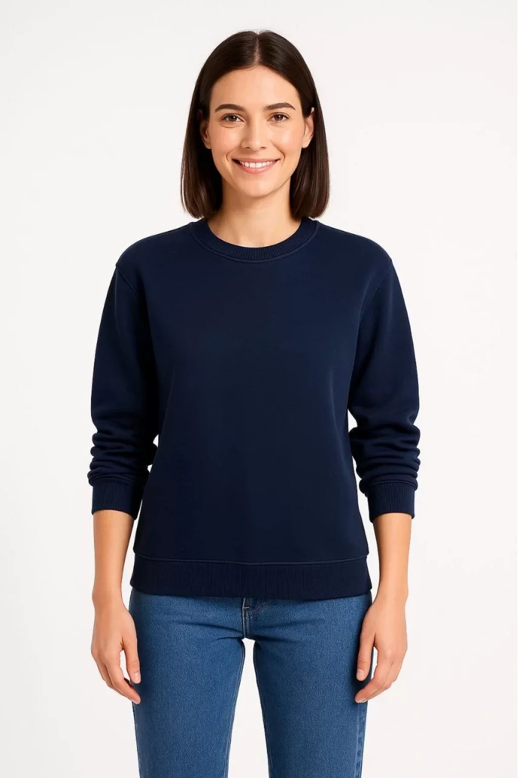 Kadın Üç İplik Düz Bisiklet Yaka SweatShirt - Lacivert