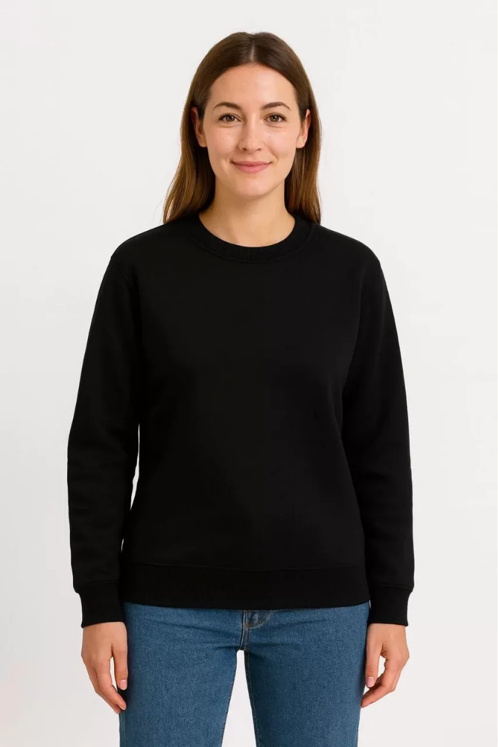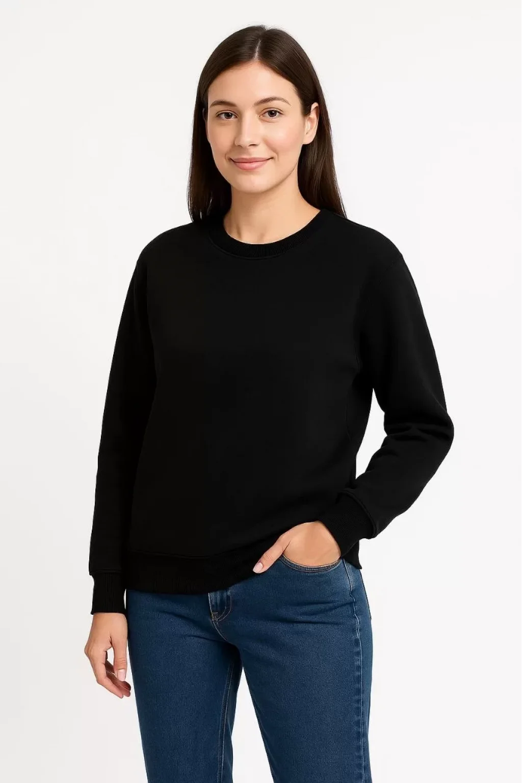 Kadın Üç İplik Düz Bisiklet Yaka SweatShirt - Siyah
