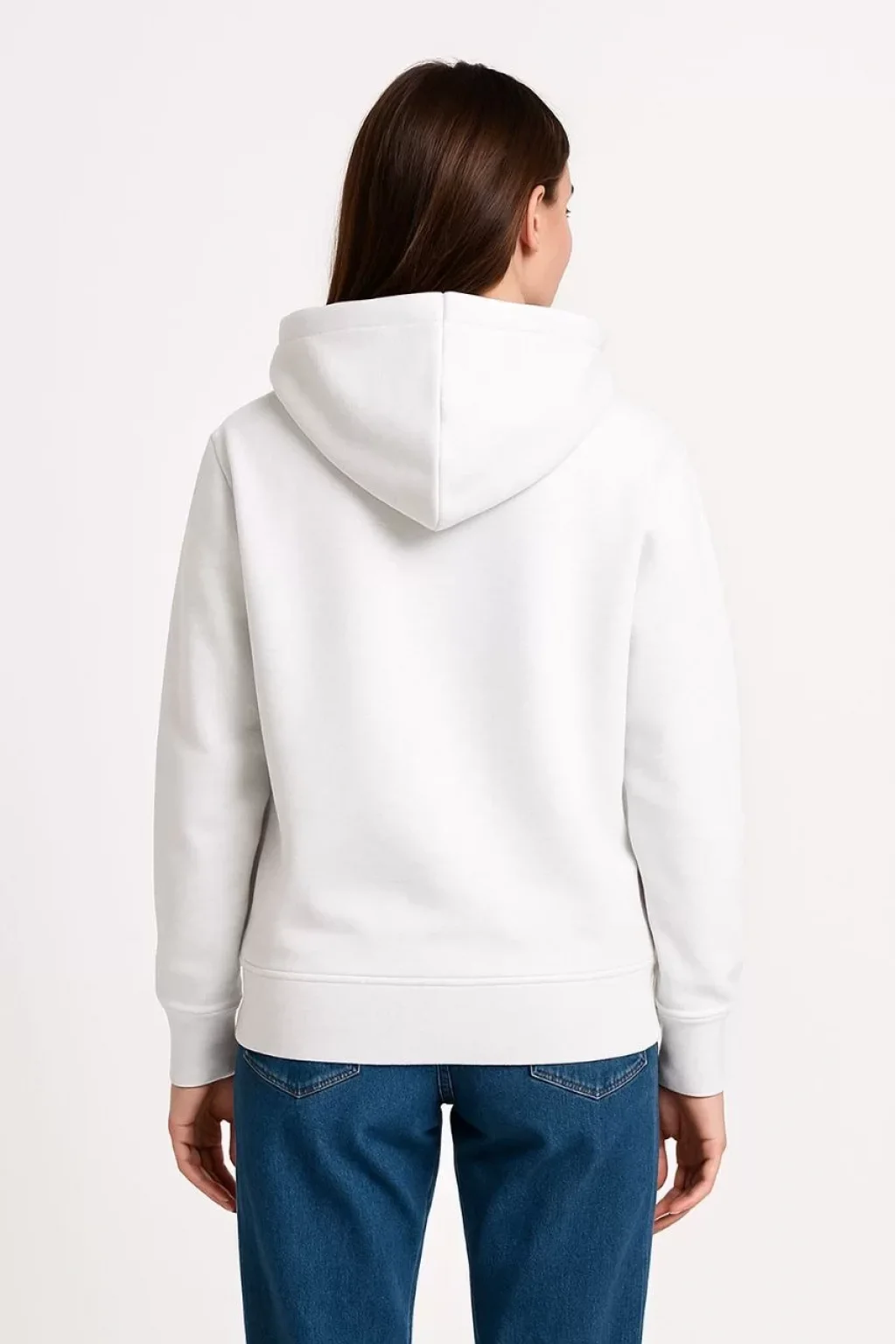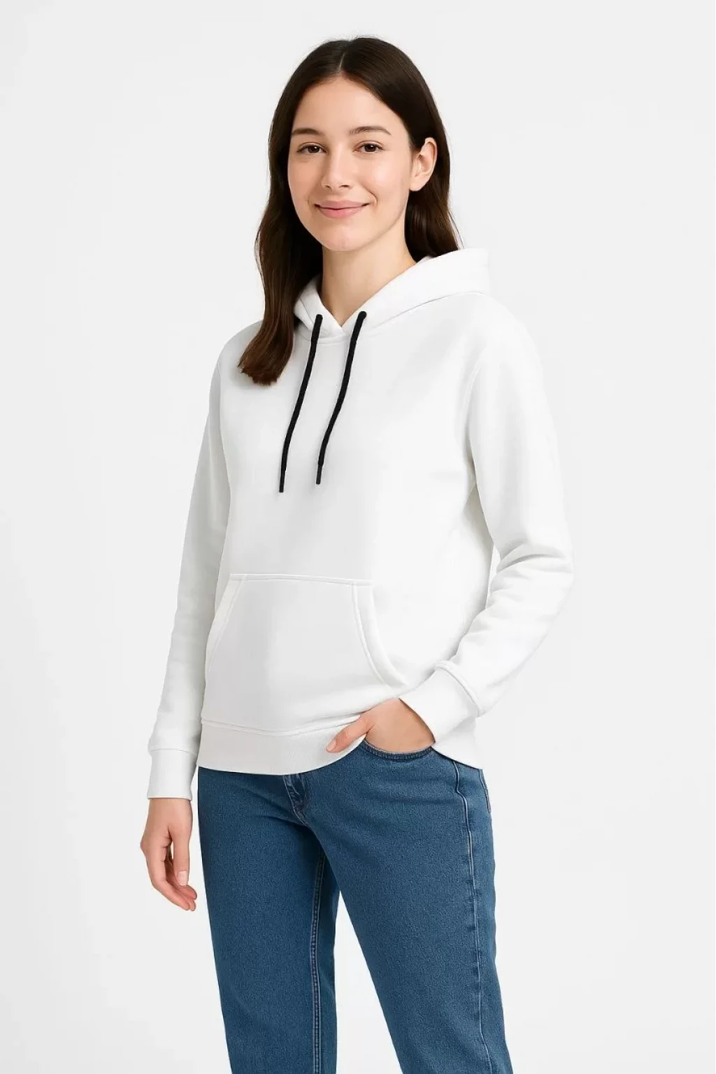 Kadın Üç İplik Kapüşonlu Kanguru Çepli SweatShirt hoodie - Beyaz