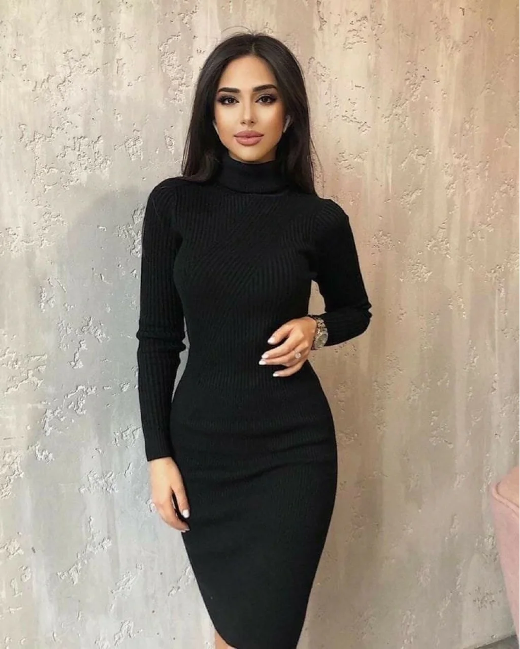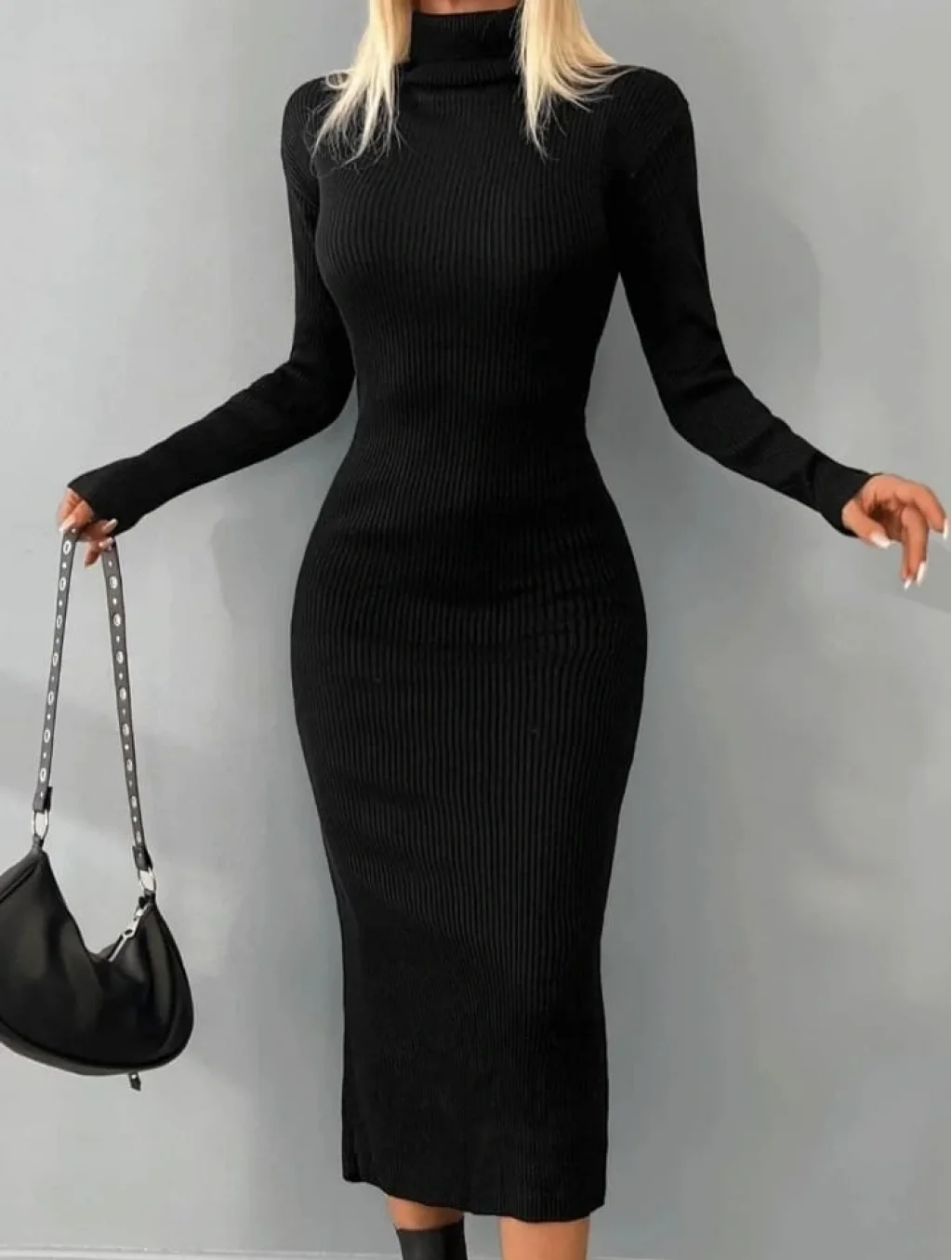 Kadın Uzun Balıkçı Yaka Midiboy Triko Elbise
