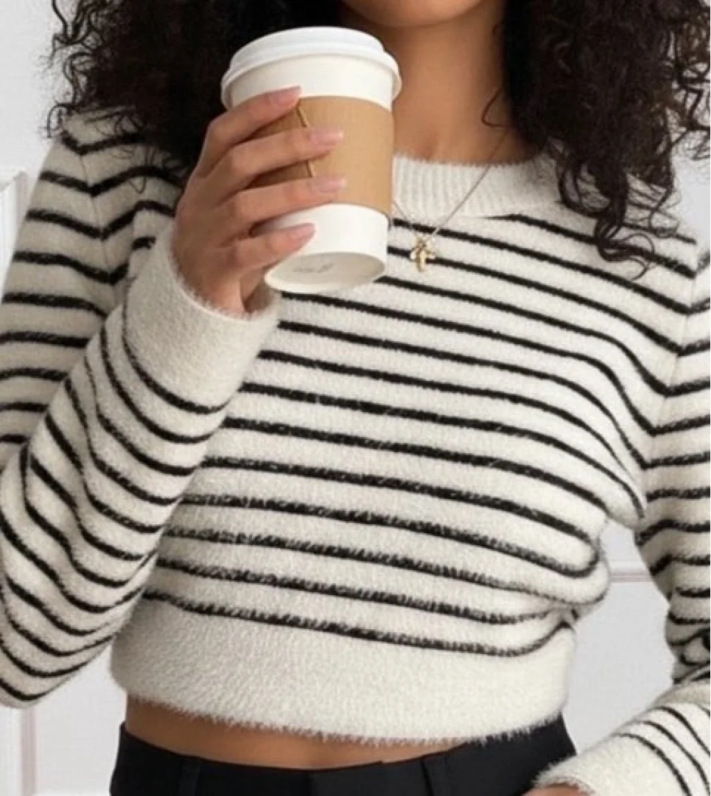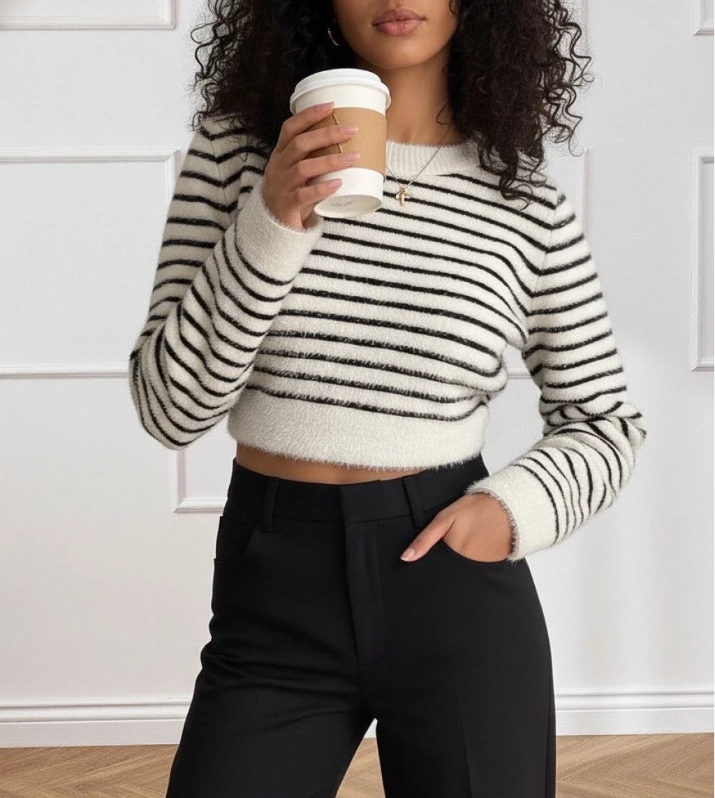 Kadın Uzun Kollu Balıkçı Yaka Crop Triko Bluz