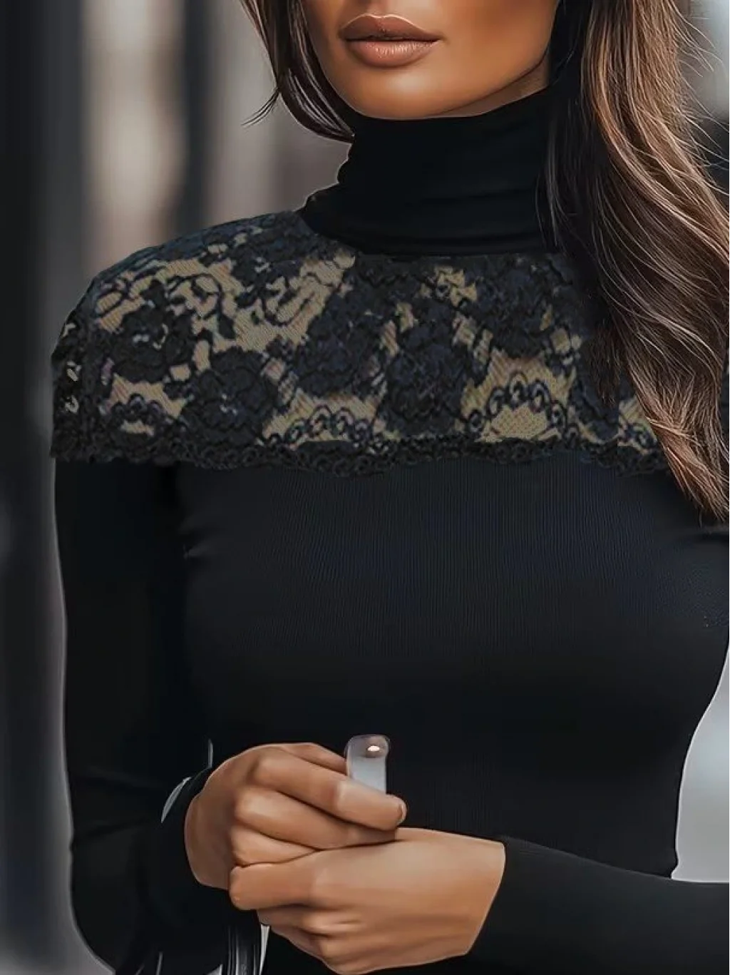 Kadın Uzun Kollu Balıkçı Yaka Dantelli Kaşkorse Bluz