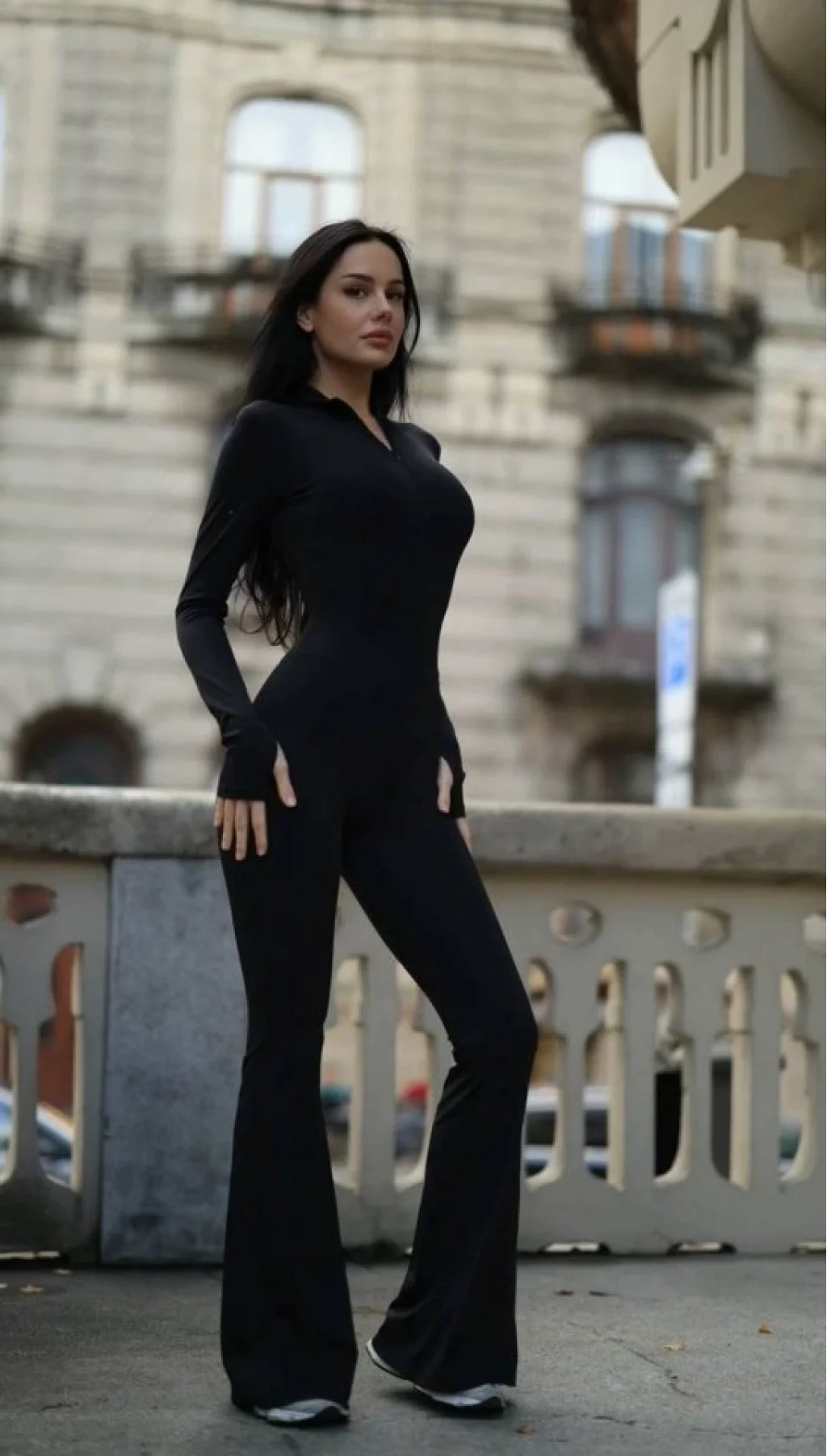 Kadın Uzun Kollu Balıkçı Yaka Fermuar Detay Ispanyol Paça Tulum
