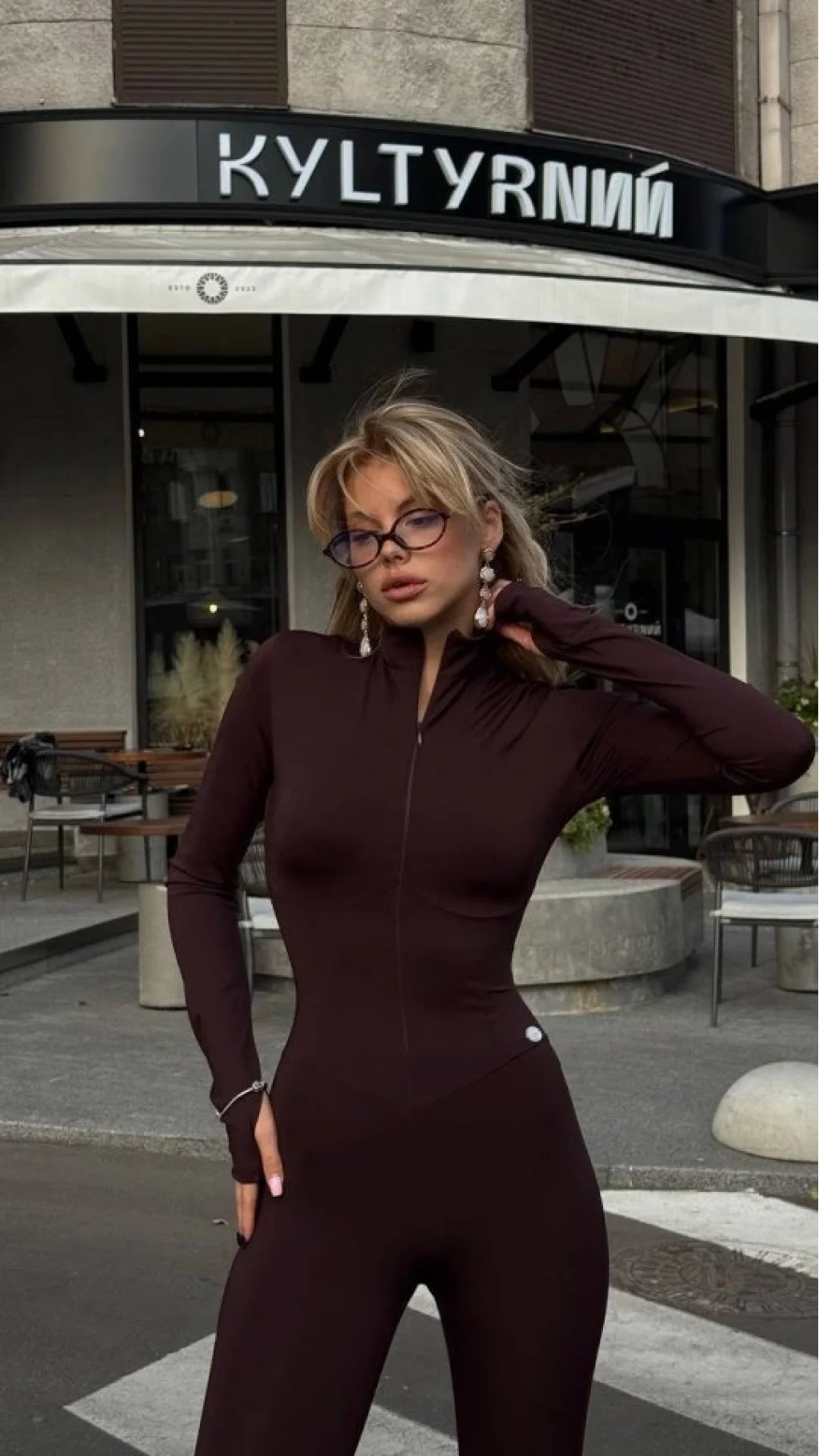 Kadın Uzun Kollu Balıkçı Yaka Fermuar Detay Ispanyol Paça Tulum