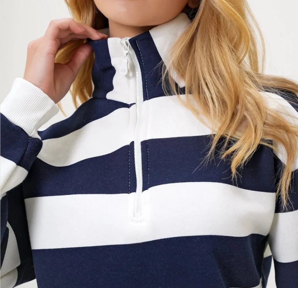 Kadın Uzun Kollu Balıkçı Yaka Fermuar Detay şeritli üç Iplik Kumaş Sweat