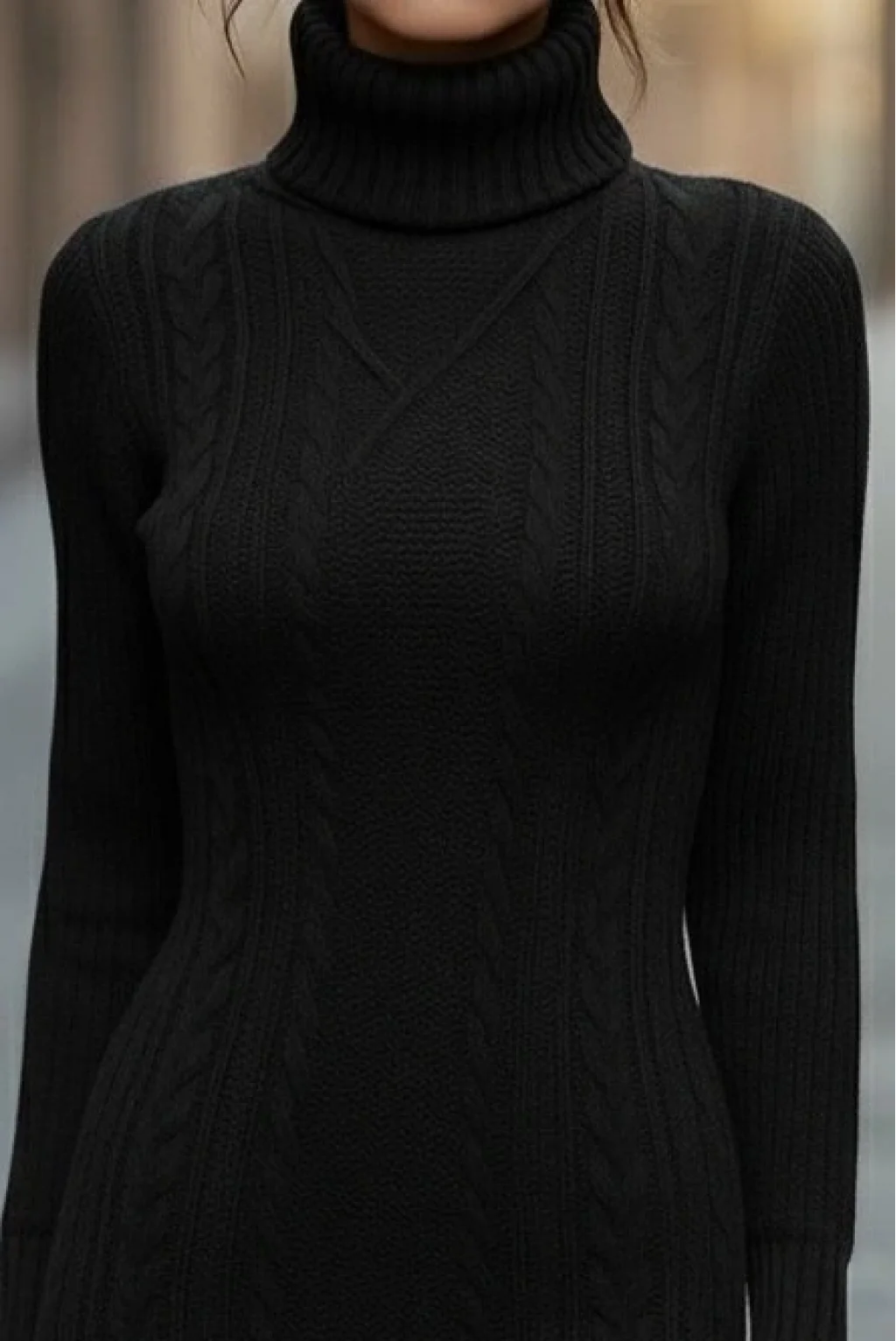 Kadın Uzun Kollu Balıkçı Yaka Kısa Triko Elbise