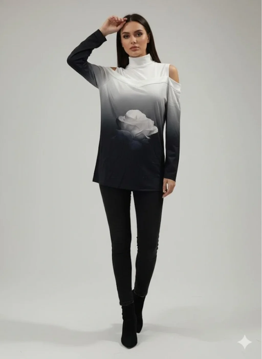 Kadın Uzun Kollu Balıkçı Yaka Omuz Dekoltesi Detaylı Bluz