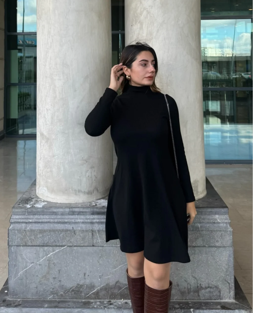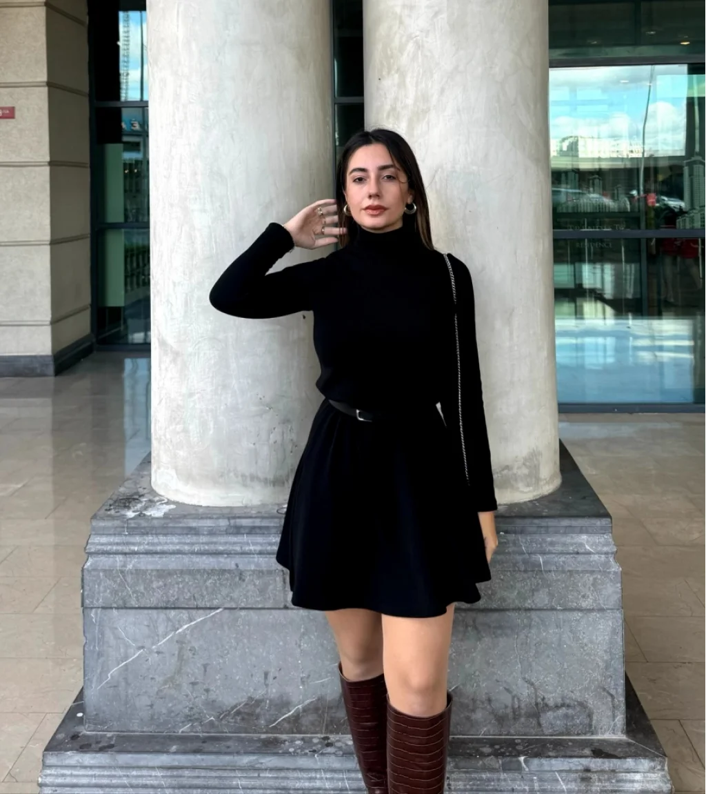 Kadın Uzun Kollu Balıkçı Yaka Salaş Kusa Akrilik Elbise