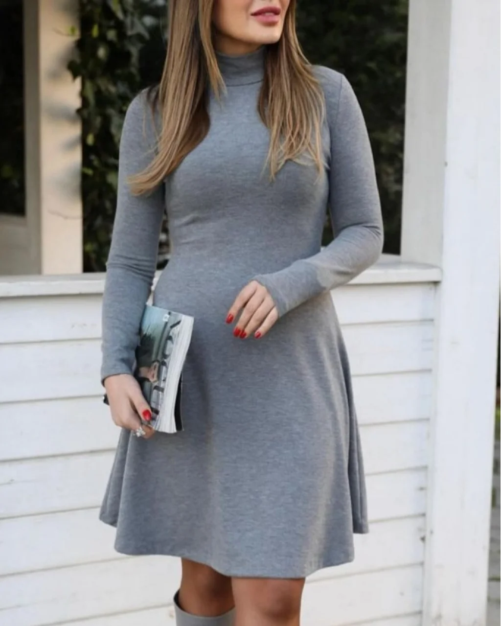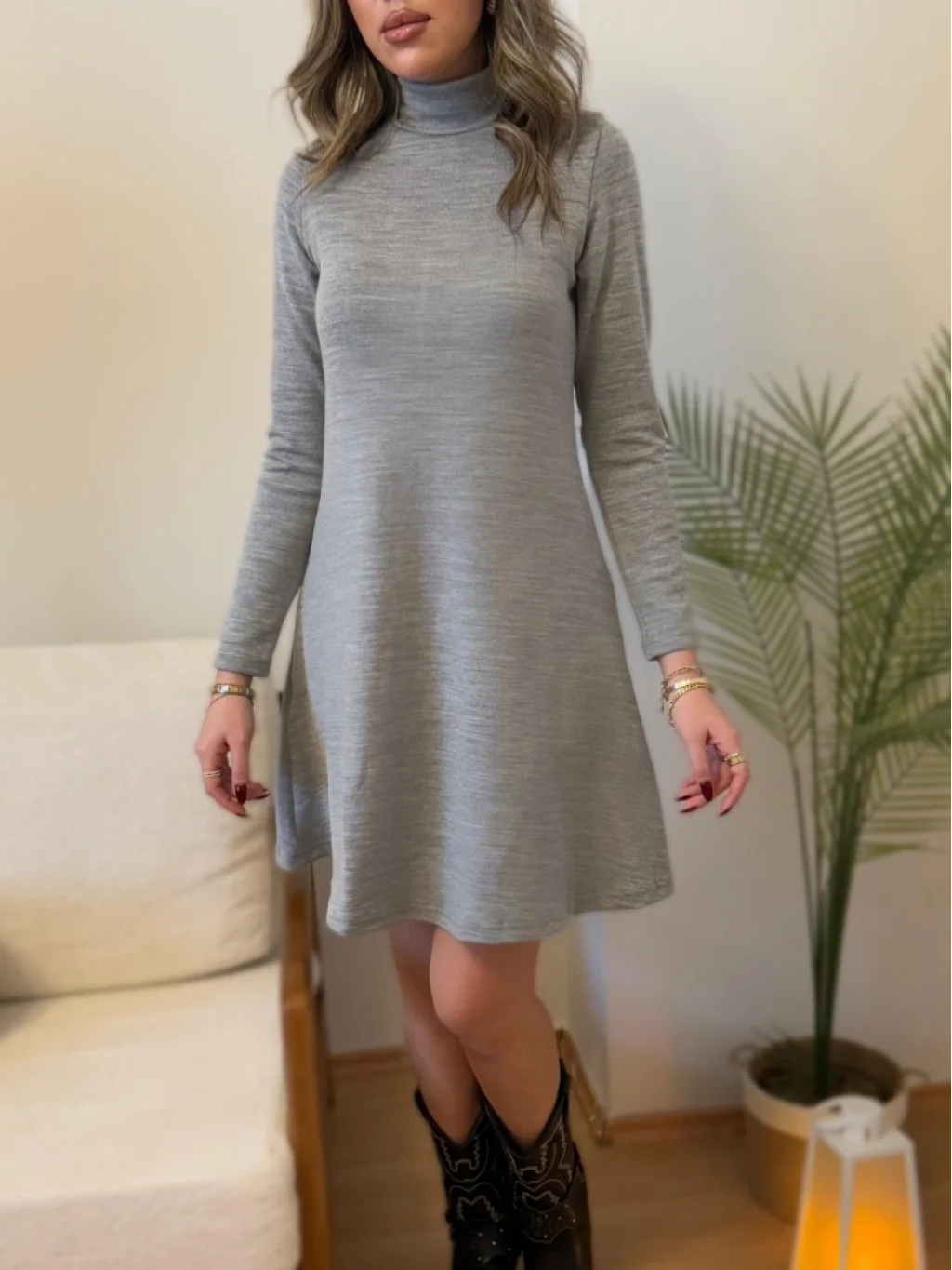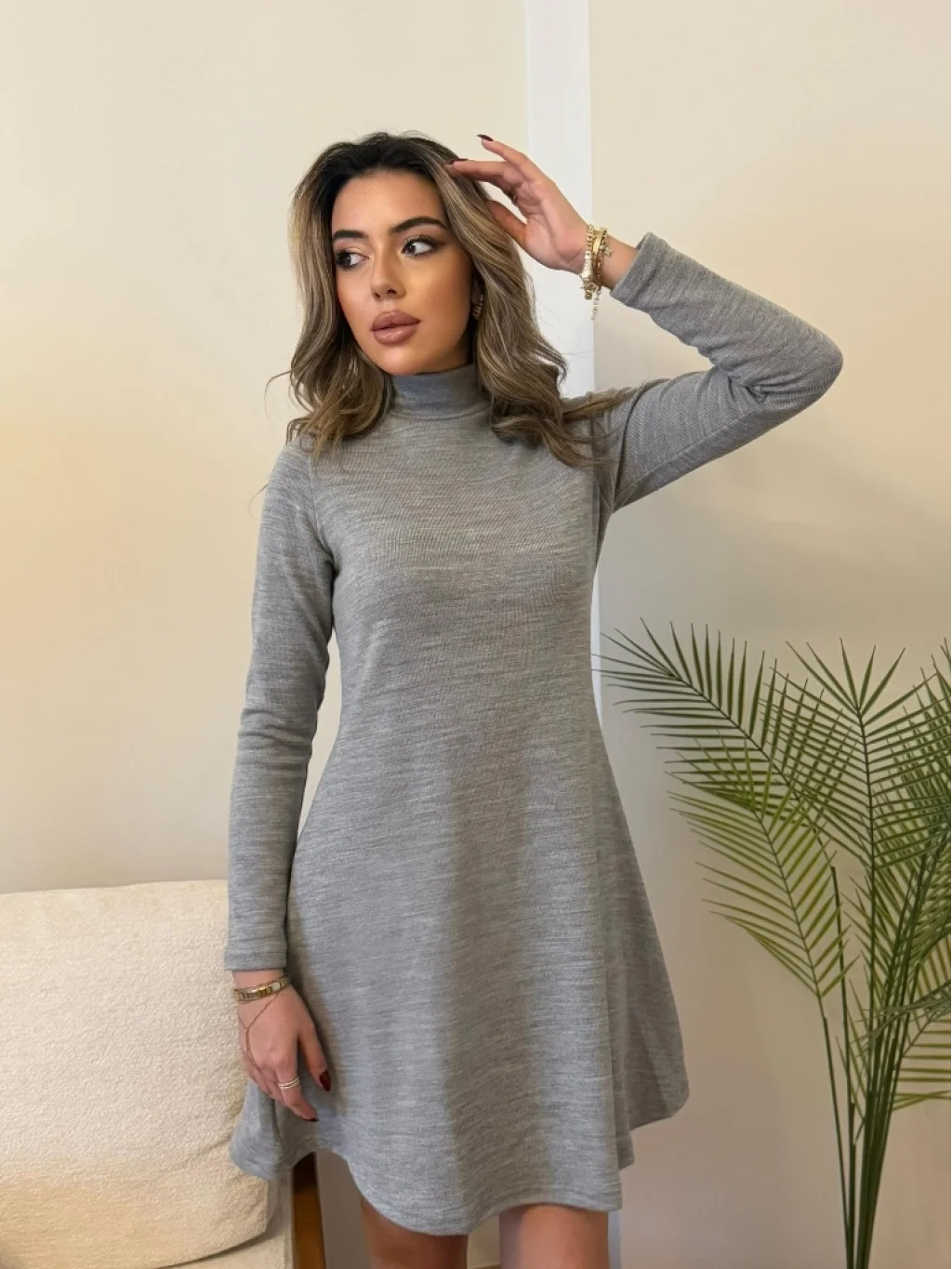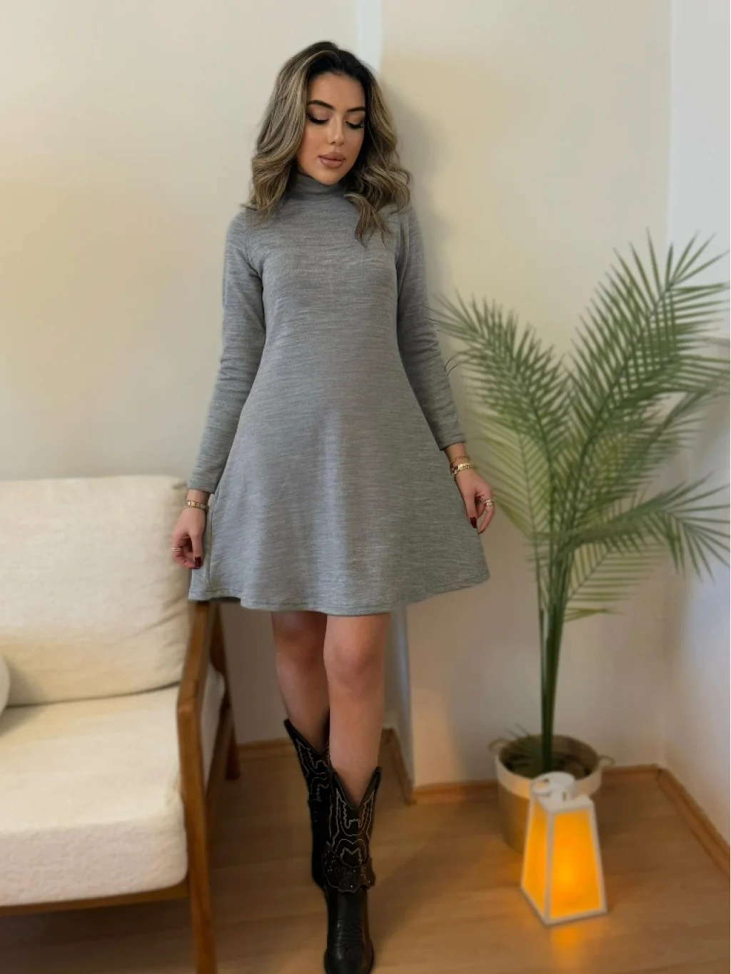 Kadın Uzun Kollu Balıkçı Yaka Salaş Kusa Akrilik Elbise