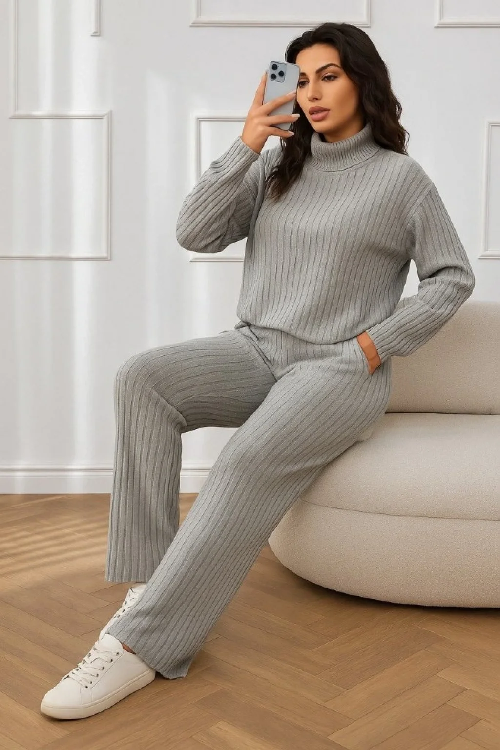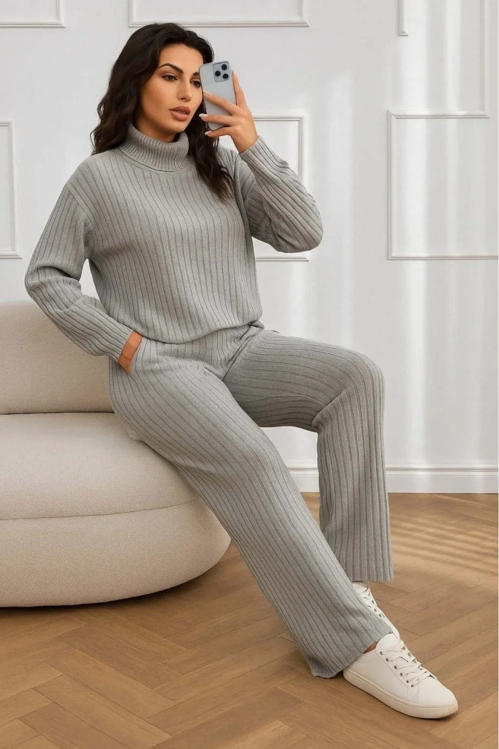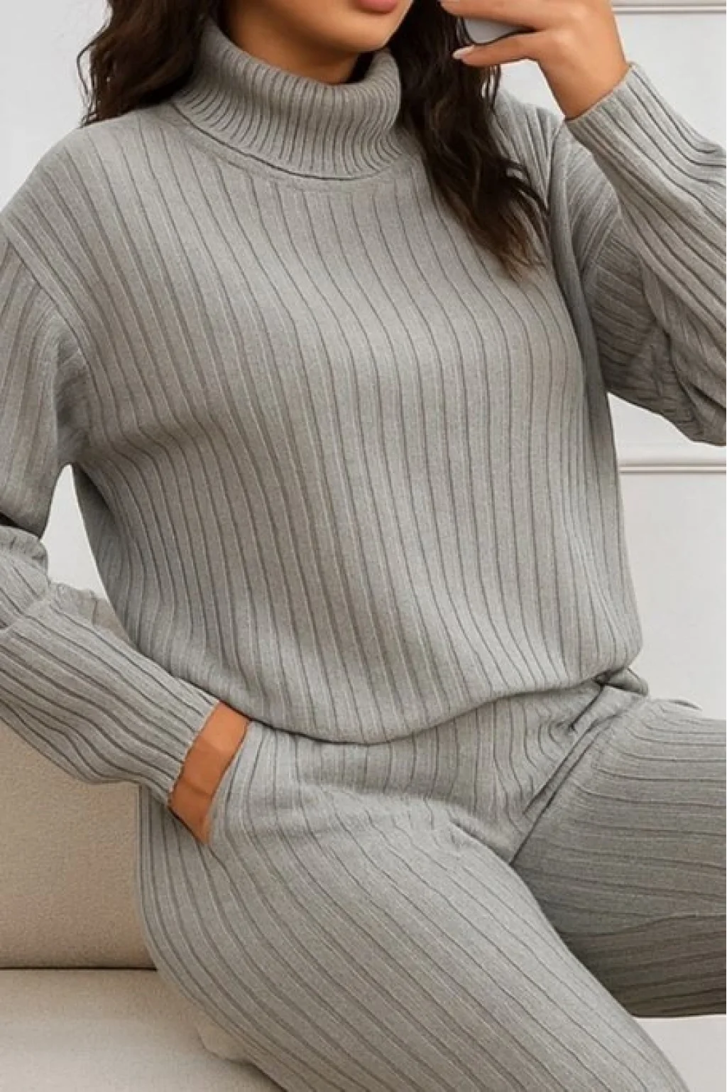 Kadın Uzun Kollu Balıkçı Yaka şardonlu Bluz Ve Pantolon Ikili Takım