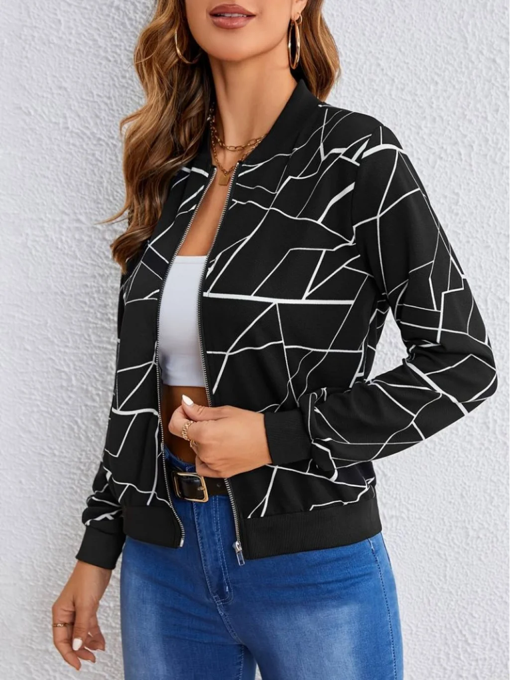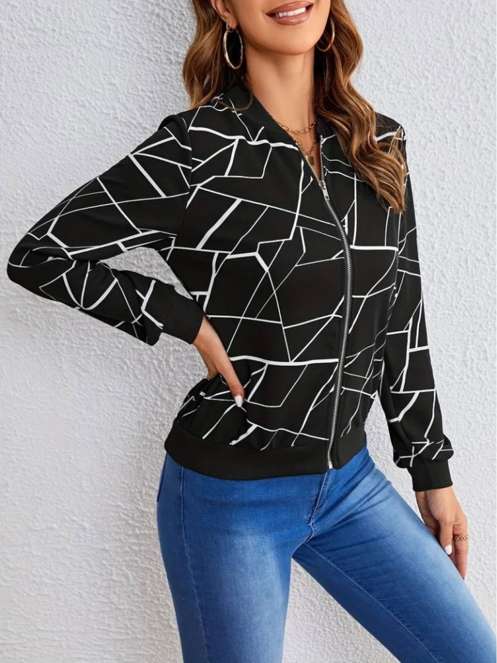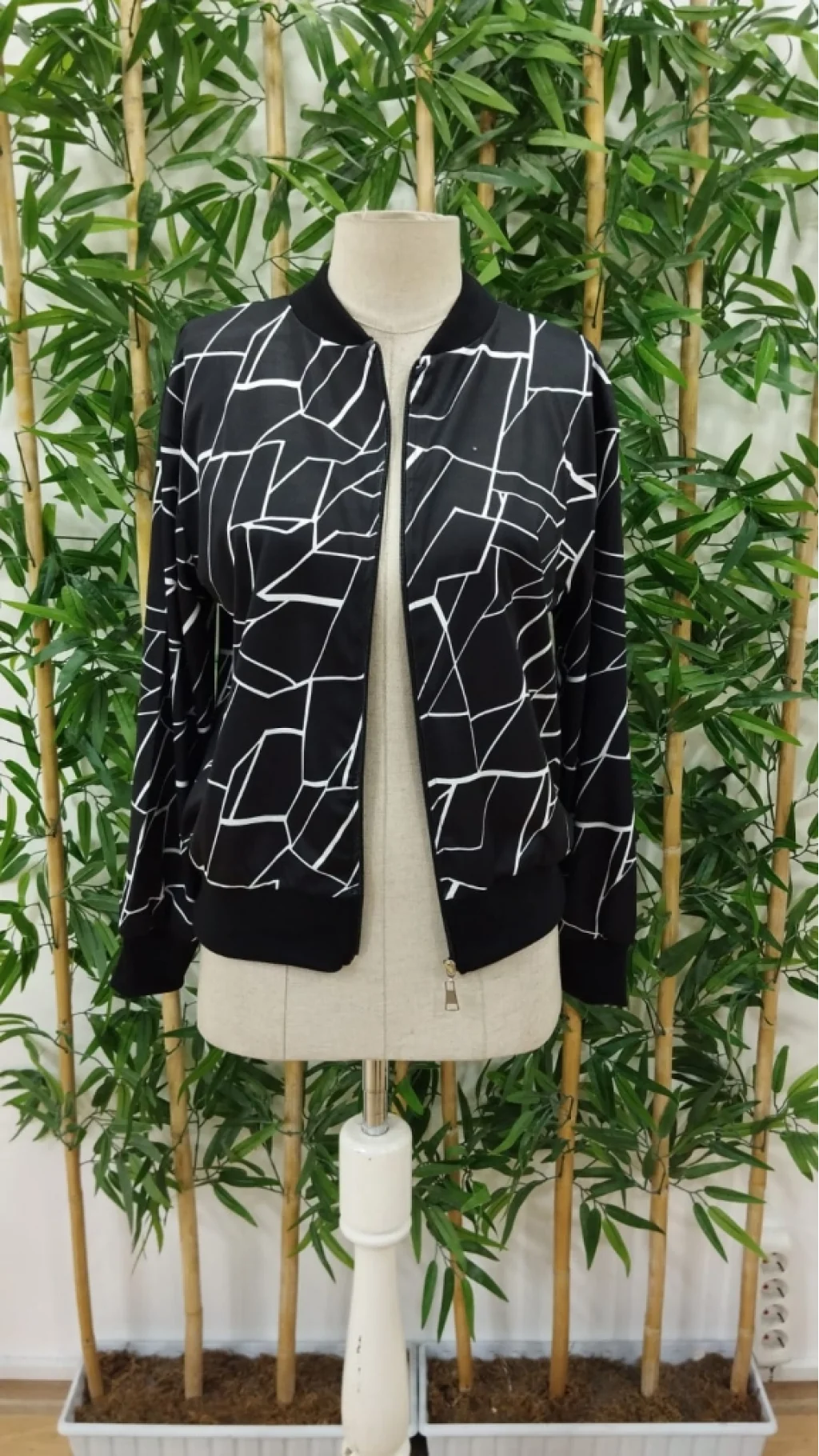 Kadın Uzun Kollu Baskılı Dalgıç Ceket