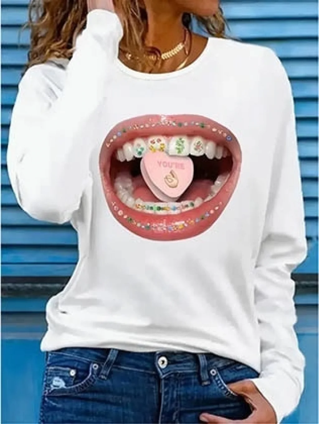 Kadın Uzun Kollu Bisiklet Yaka Baskılı Viskon Bluz