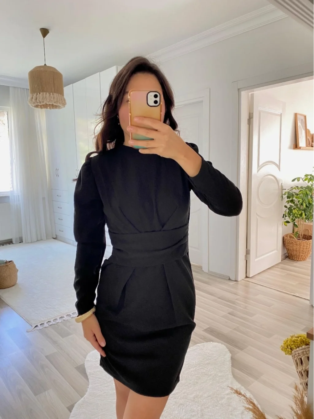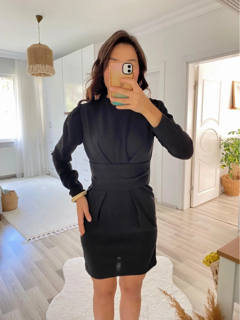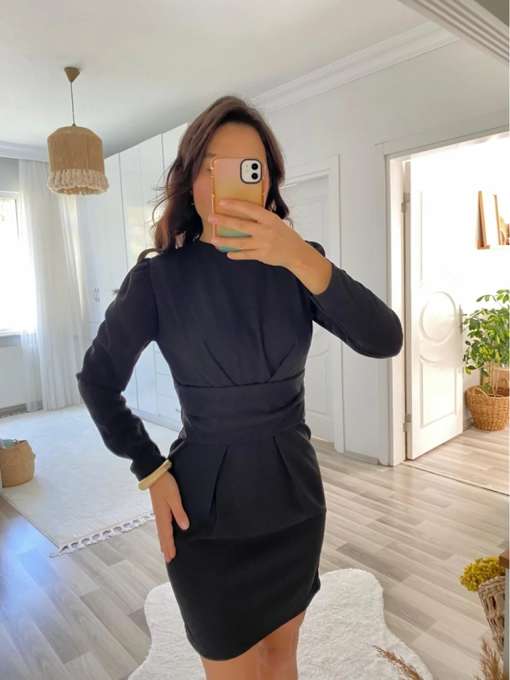 Kadın Uzun Kollu Bisiklet Yaka Bel Kemer Detay Ithal Krep Elbise