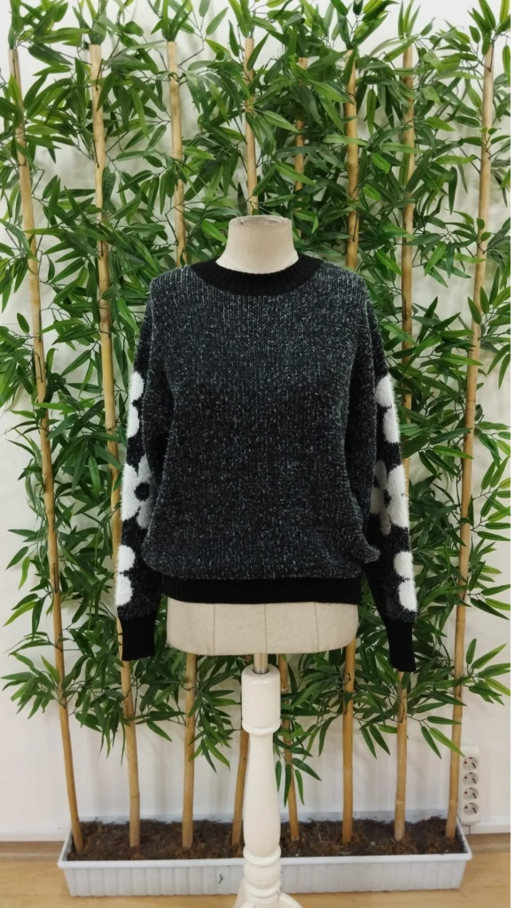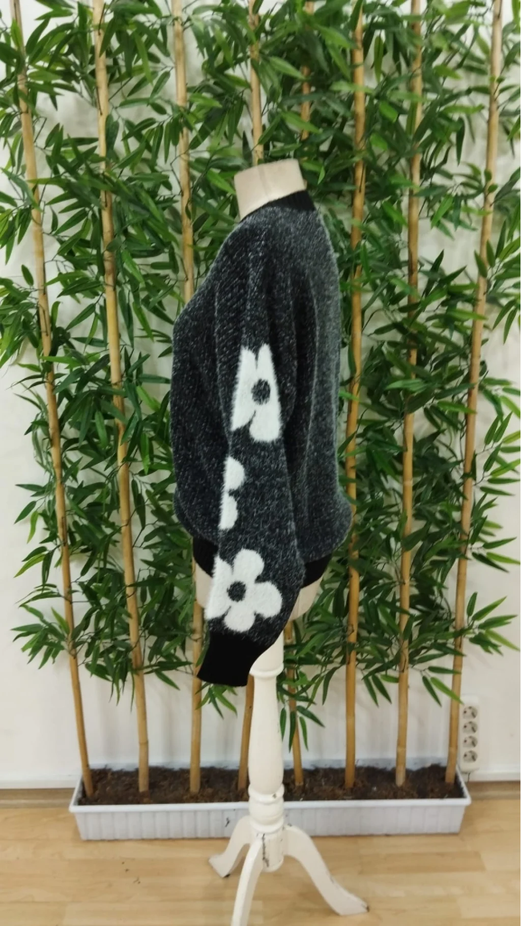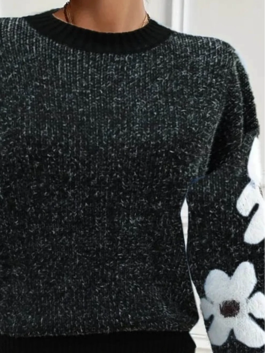 Kadın Uzun Kollu Bisiklet Yaka çiçek Desenli Triko Bluz