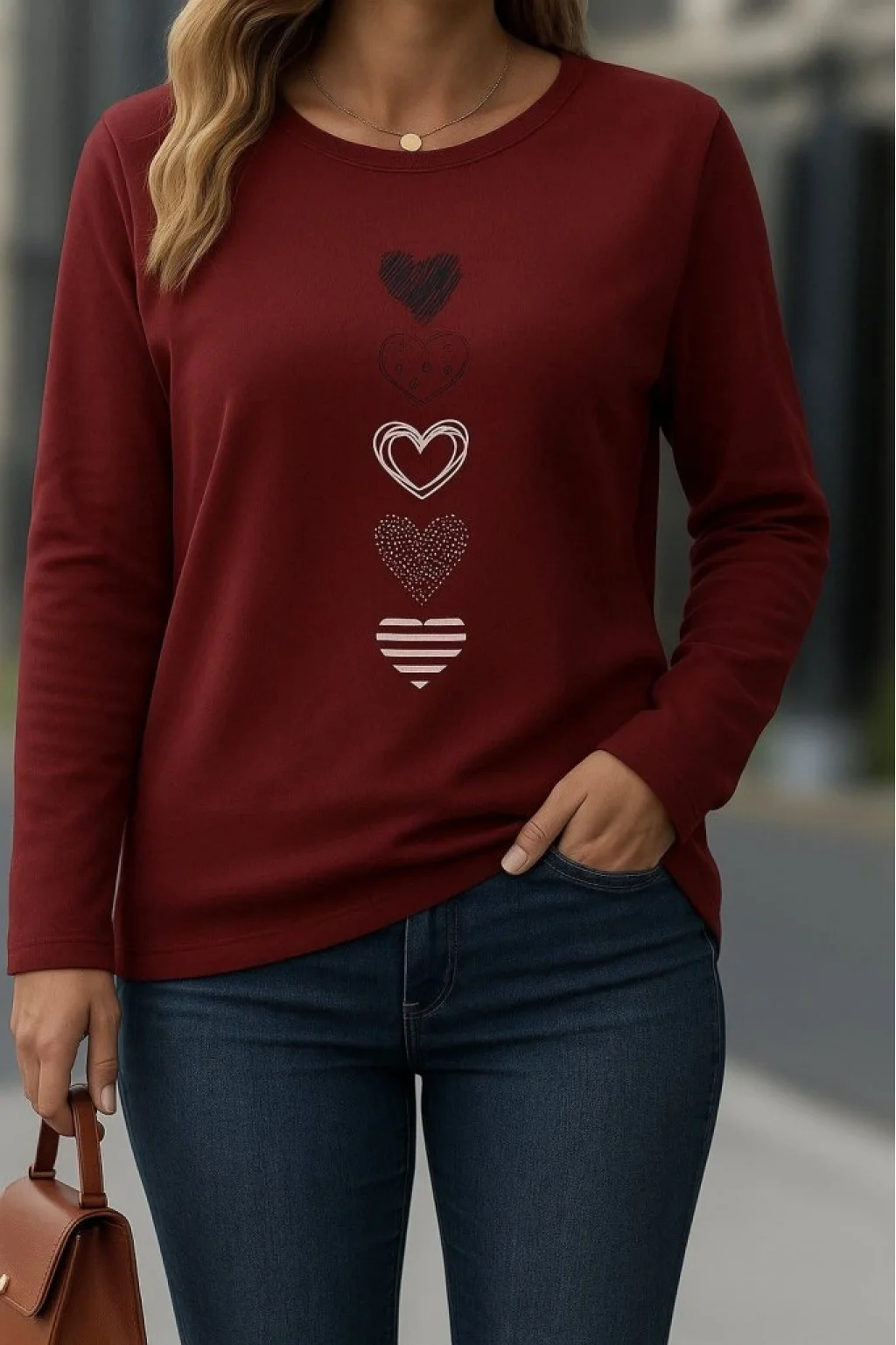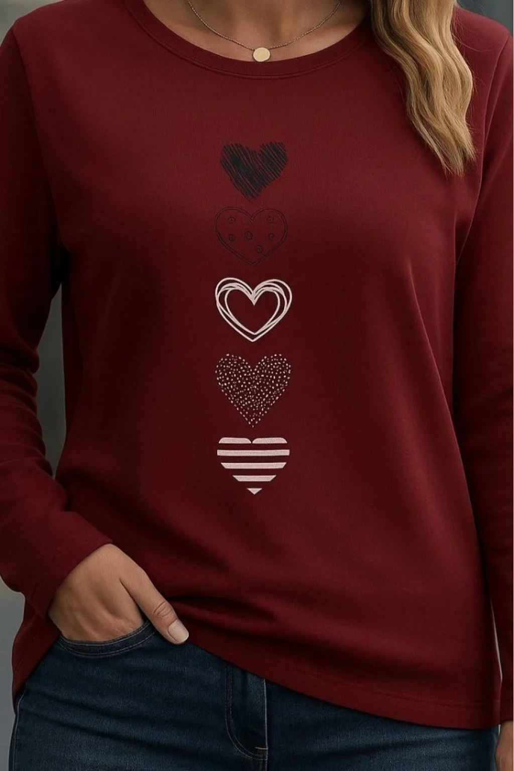Kadın Uzun Kollu Bisiklet Yaka Desenli Viskon Bluz