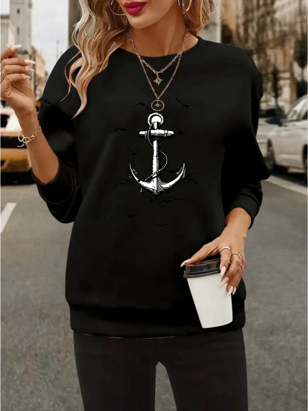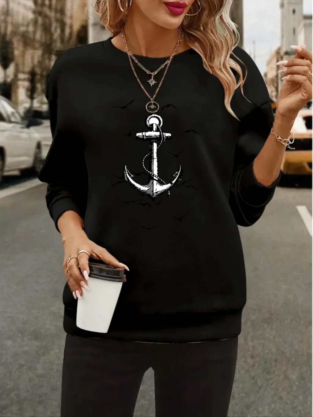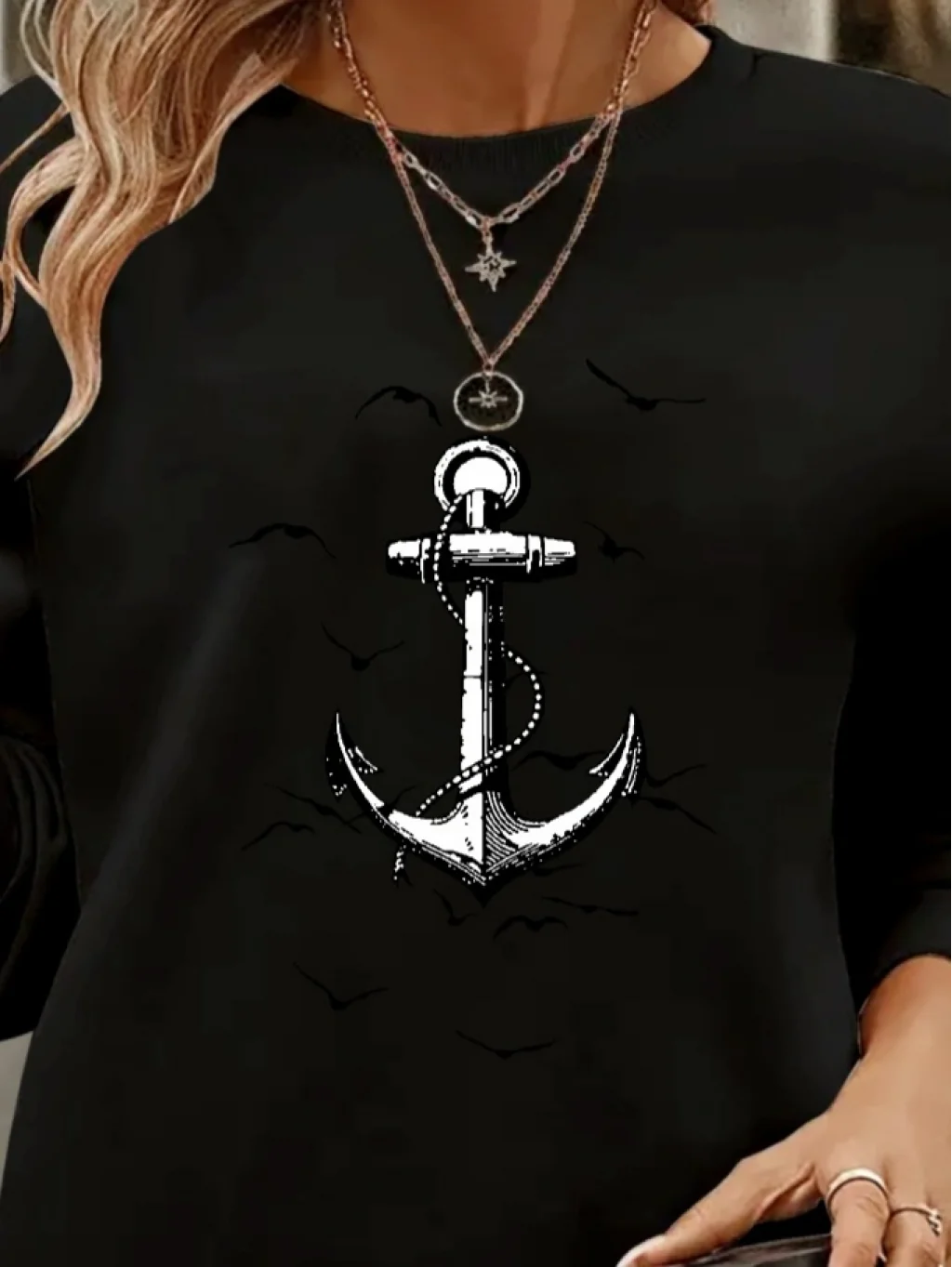 Kadın Uzun Kollu Bisiklet Yaka Desenli Viskon Iki Iplik Bluz