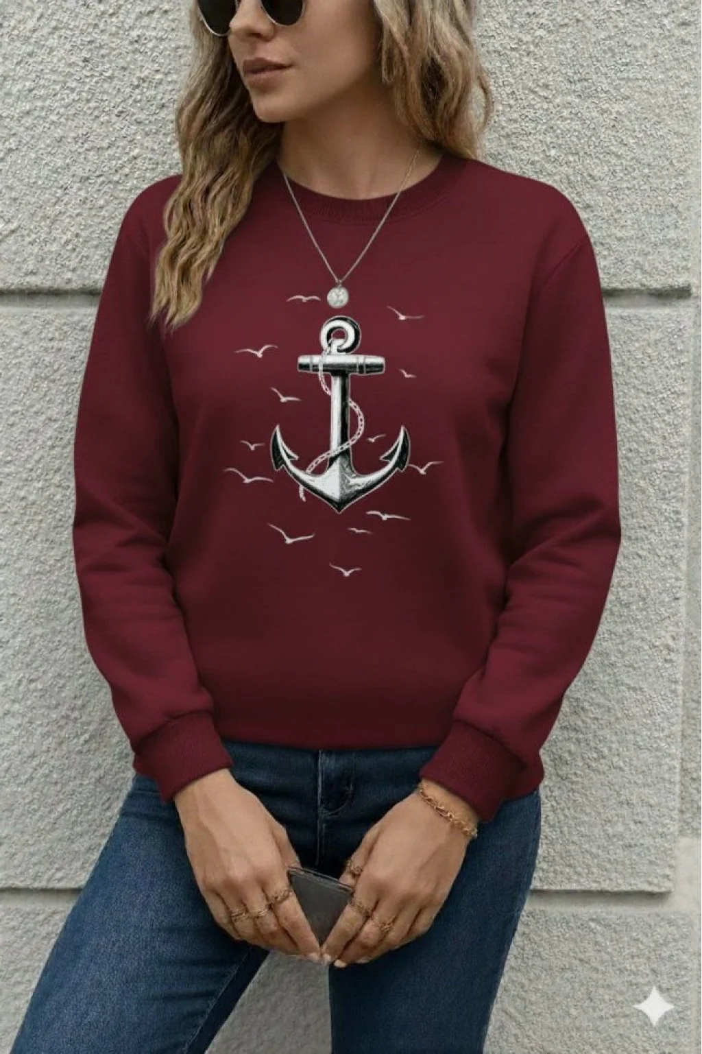 Kadın Uzun Kollu Bisiklet Yaka Desenli Viskon Iki Iplik Bluz