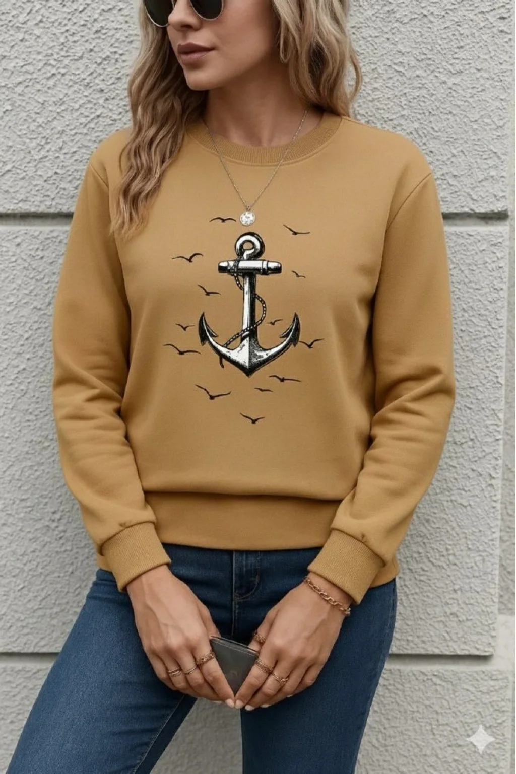 Kadın Uzun Kollu Bisiklet Yaka Desenli Viskon Iki Iplik Bluz