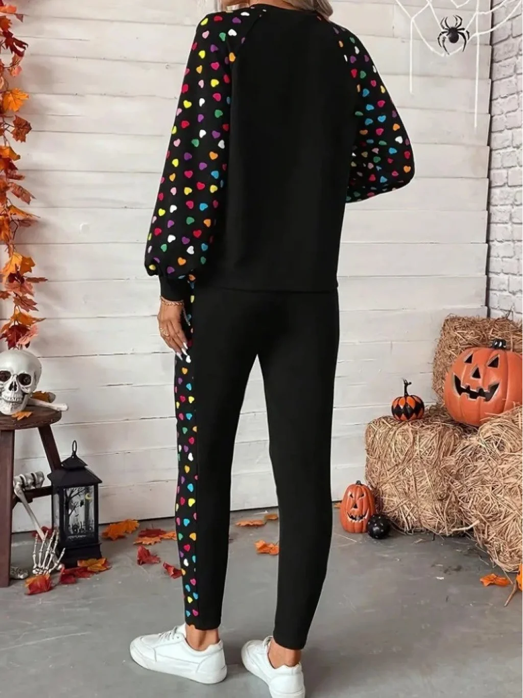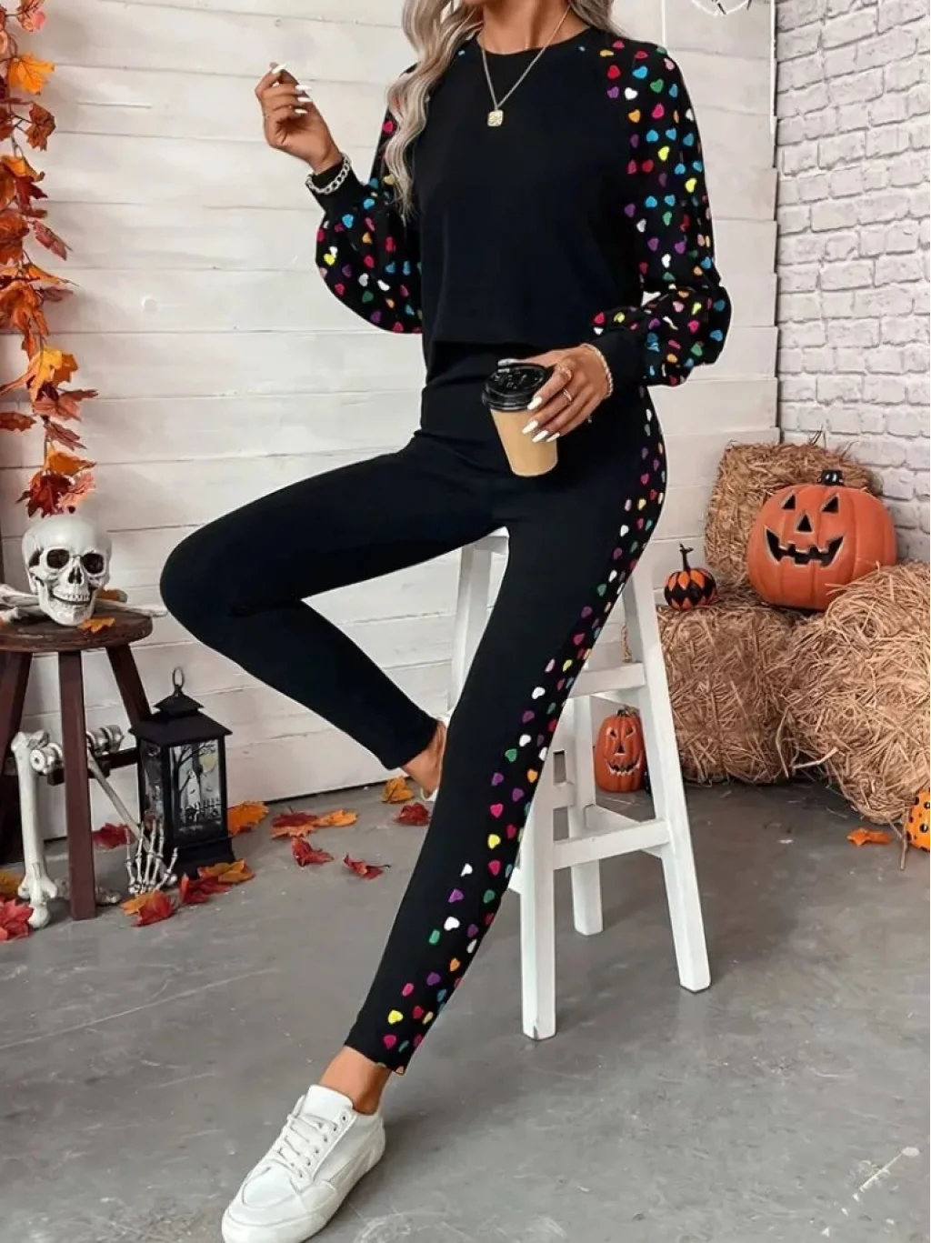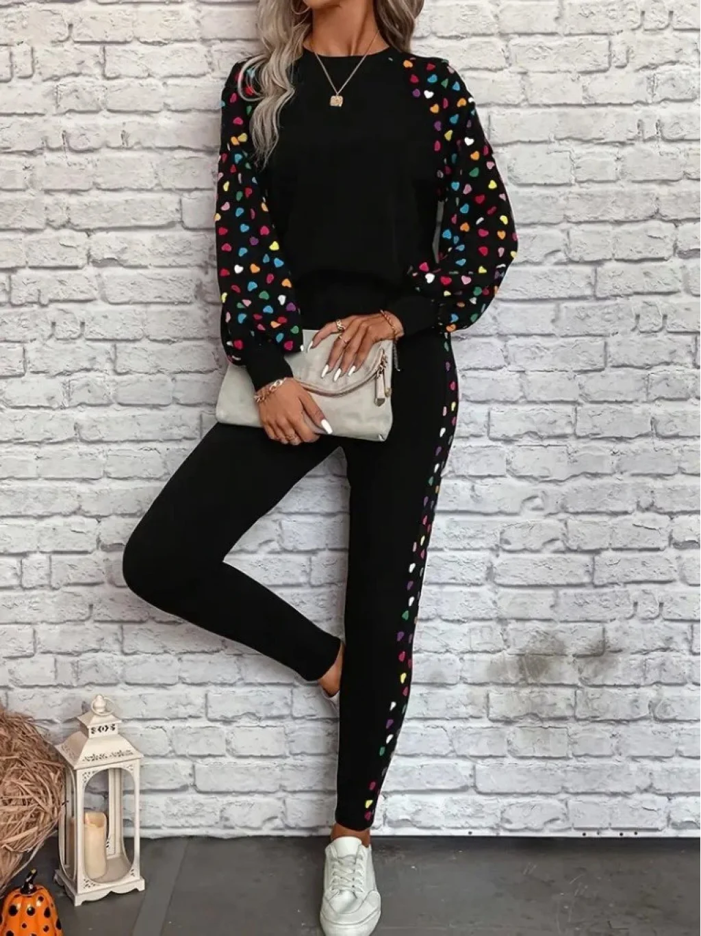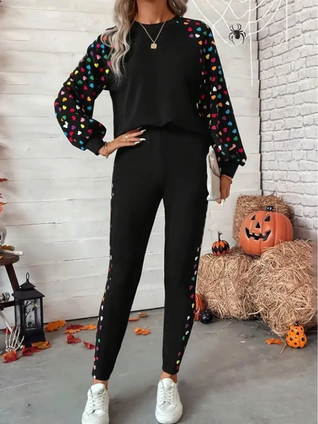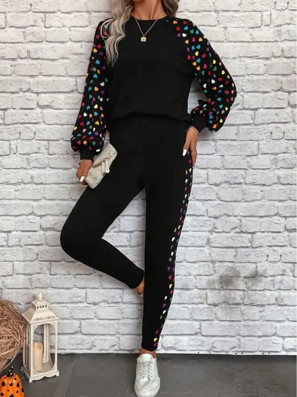 Kadın Uzun Kollu Bisiklet Yaka Desenli Viskon Iki Iplik Bluz Ve Pantolon Ikili Takım