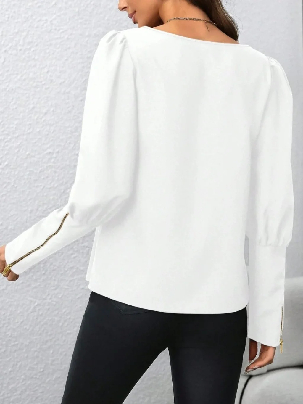 Kadın Uzun Kollu Bisiklet Yaka Fermuar Detaylı Ithal Krep Bluz