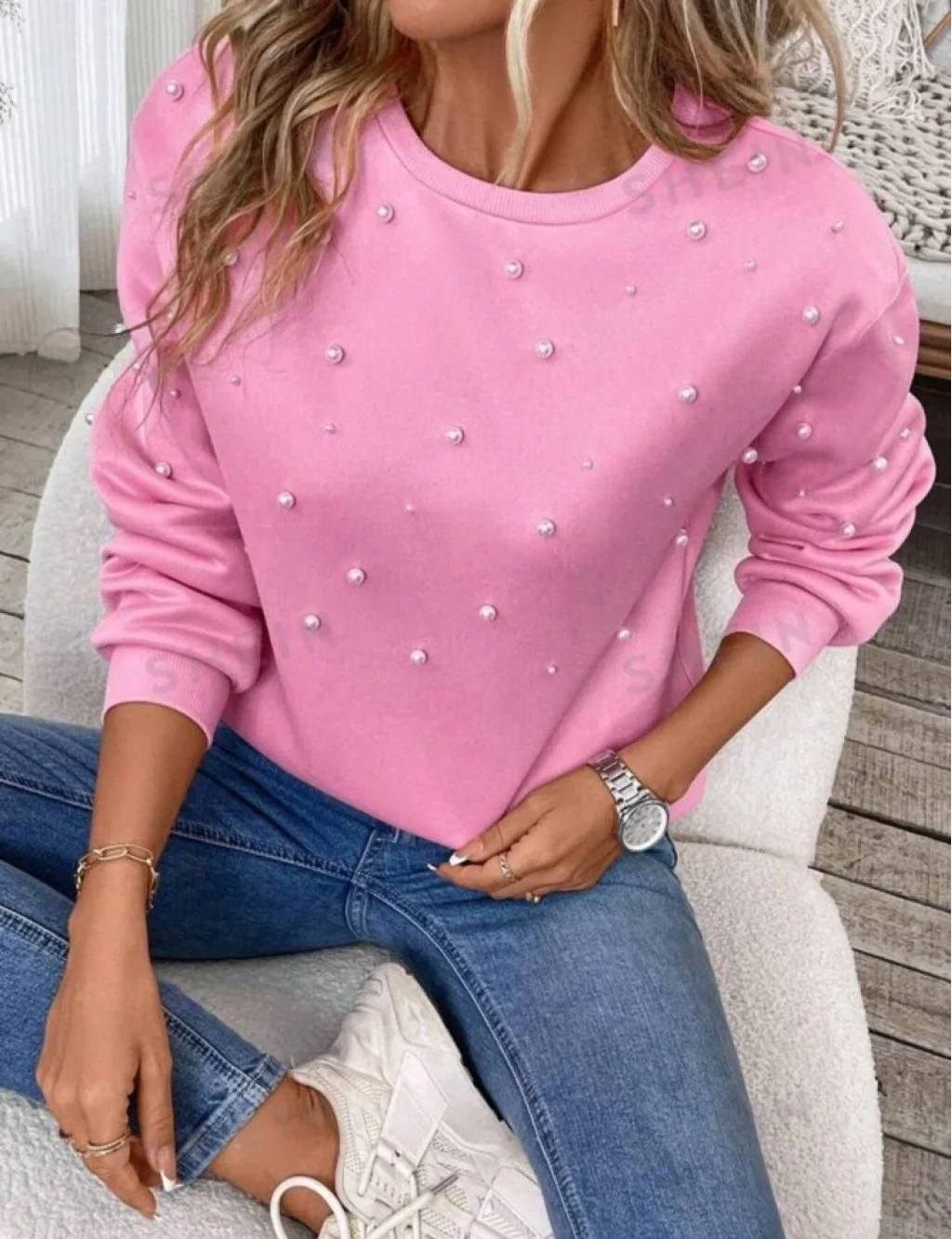 Kadın Uzun Kollu Bisiklet Yaka Inci Detay Sweat