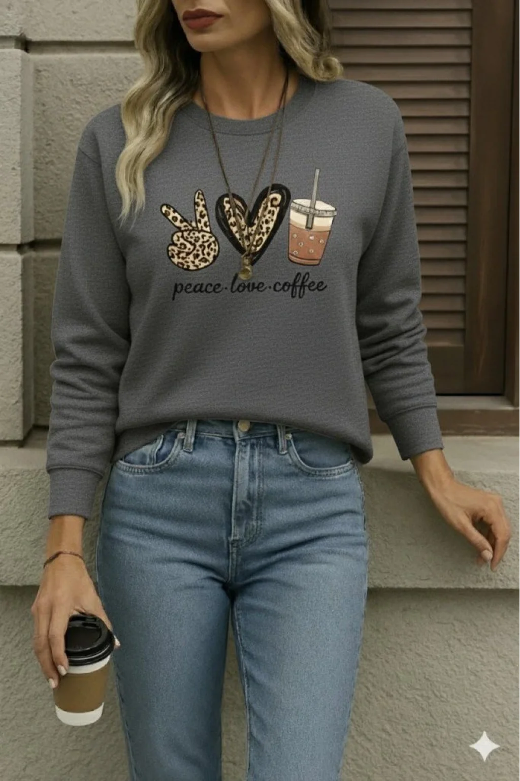 Kadın Uzun Kollu Bisiklet Yaka Kalp Desenli Viskon Iki Iplik Bluz