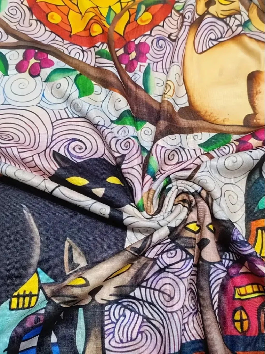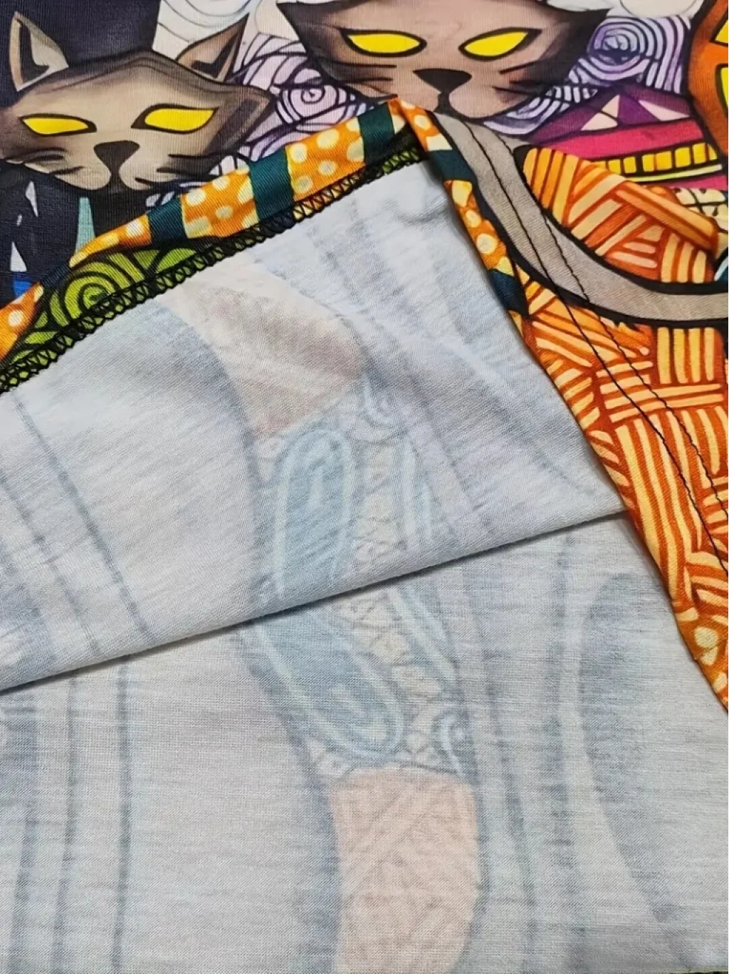 Kadın Uzun Kollu Bisiklet Yaka Kedi Baskılı Süprem Bluz