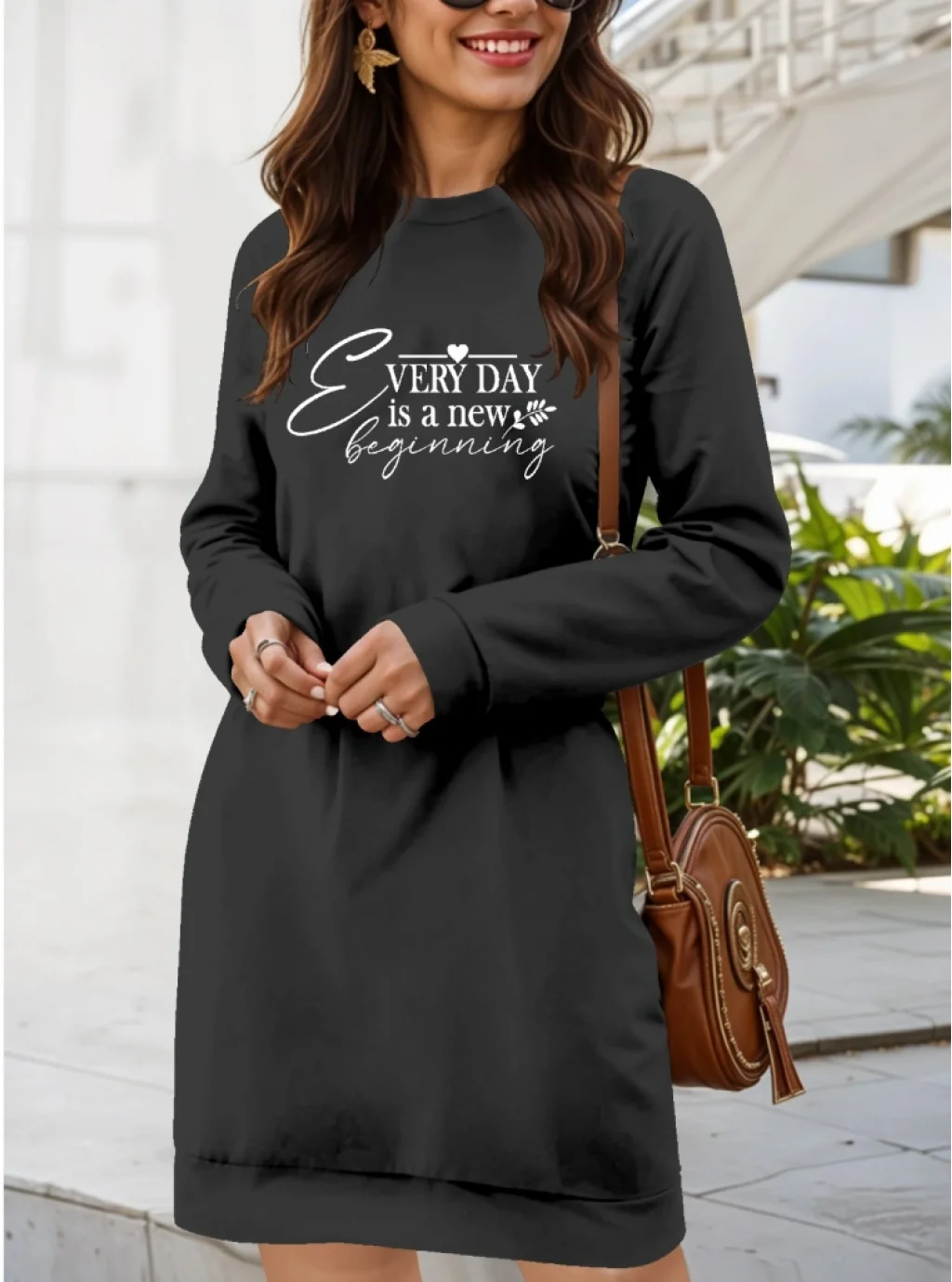 Kadın Uzun Kollu Bisiklet Yaka Kısa Viskon Iki Iplik Elbise