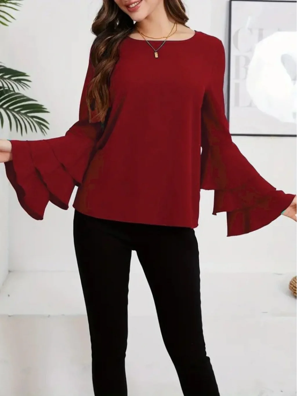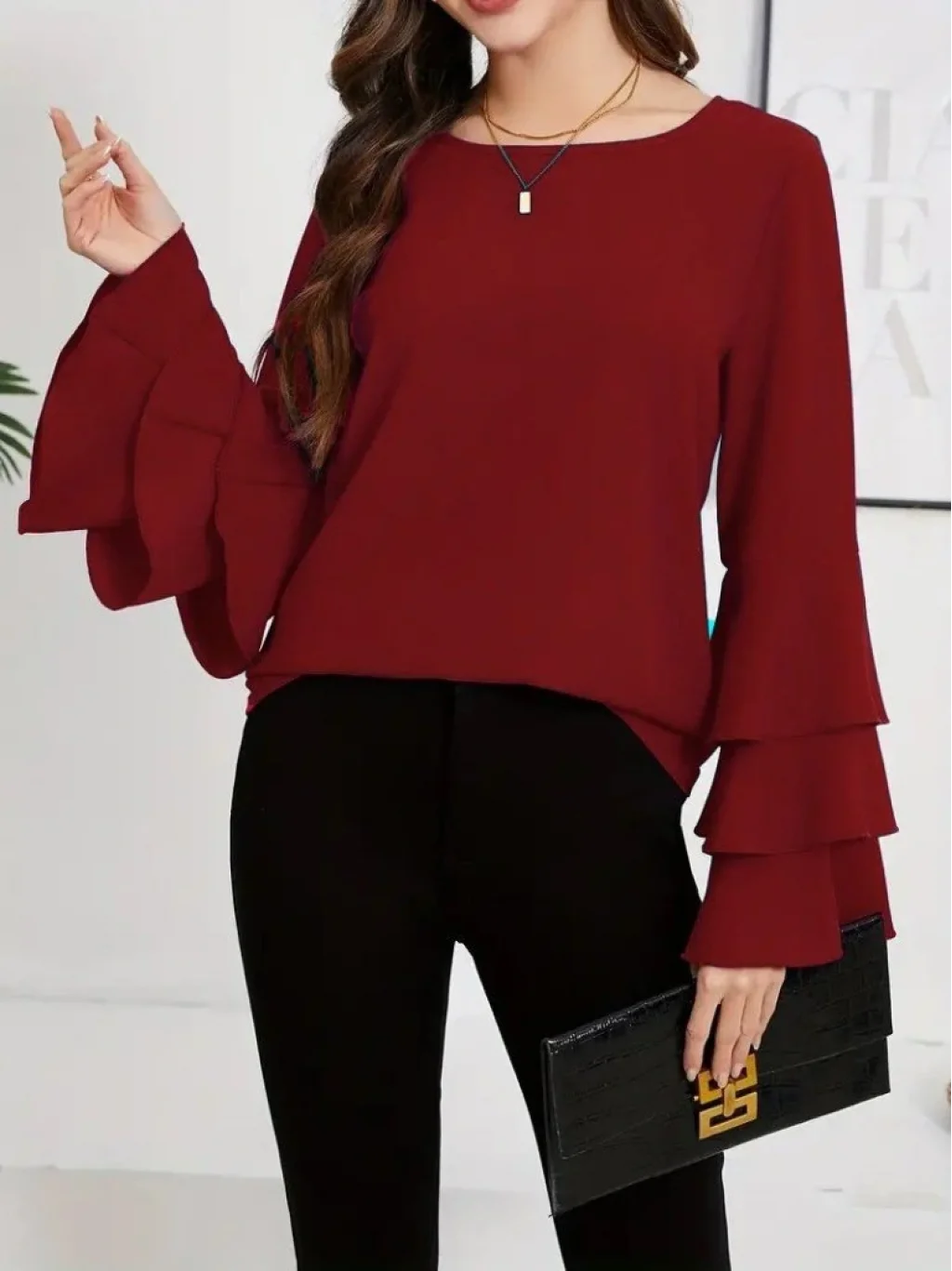 Kadın Uzun Kollu Bisiklet Yaka Kollar İspanyol Volanlı Sandy Bluz