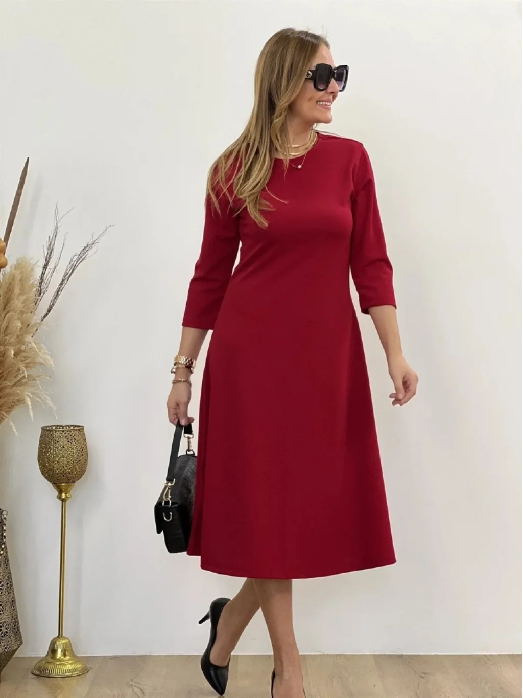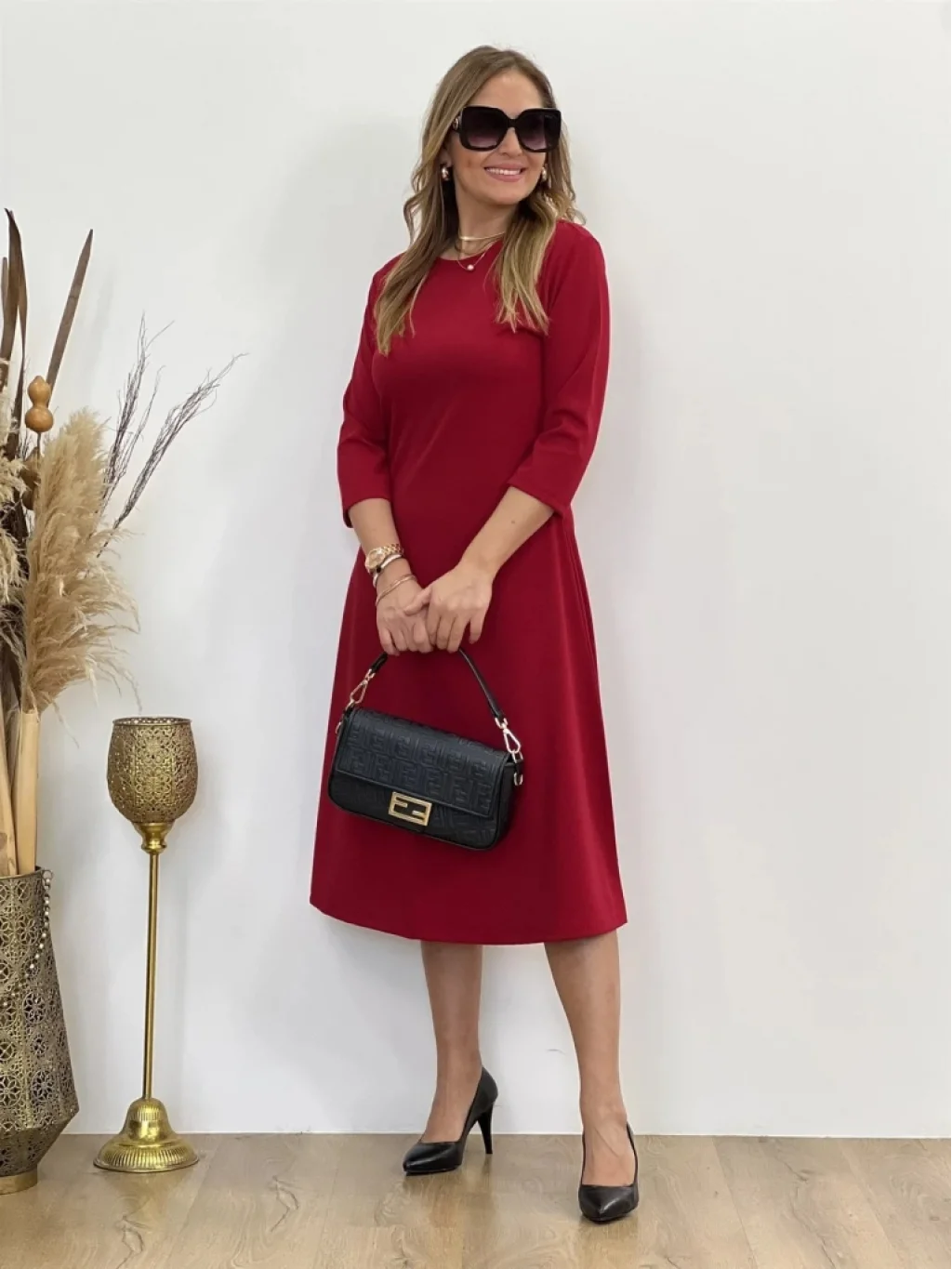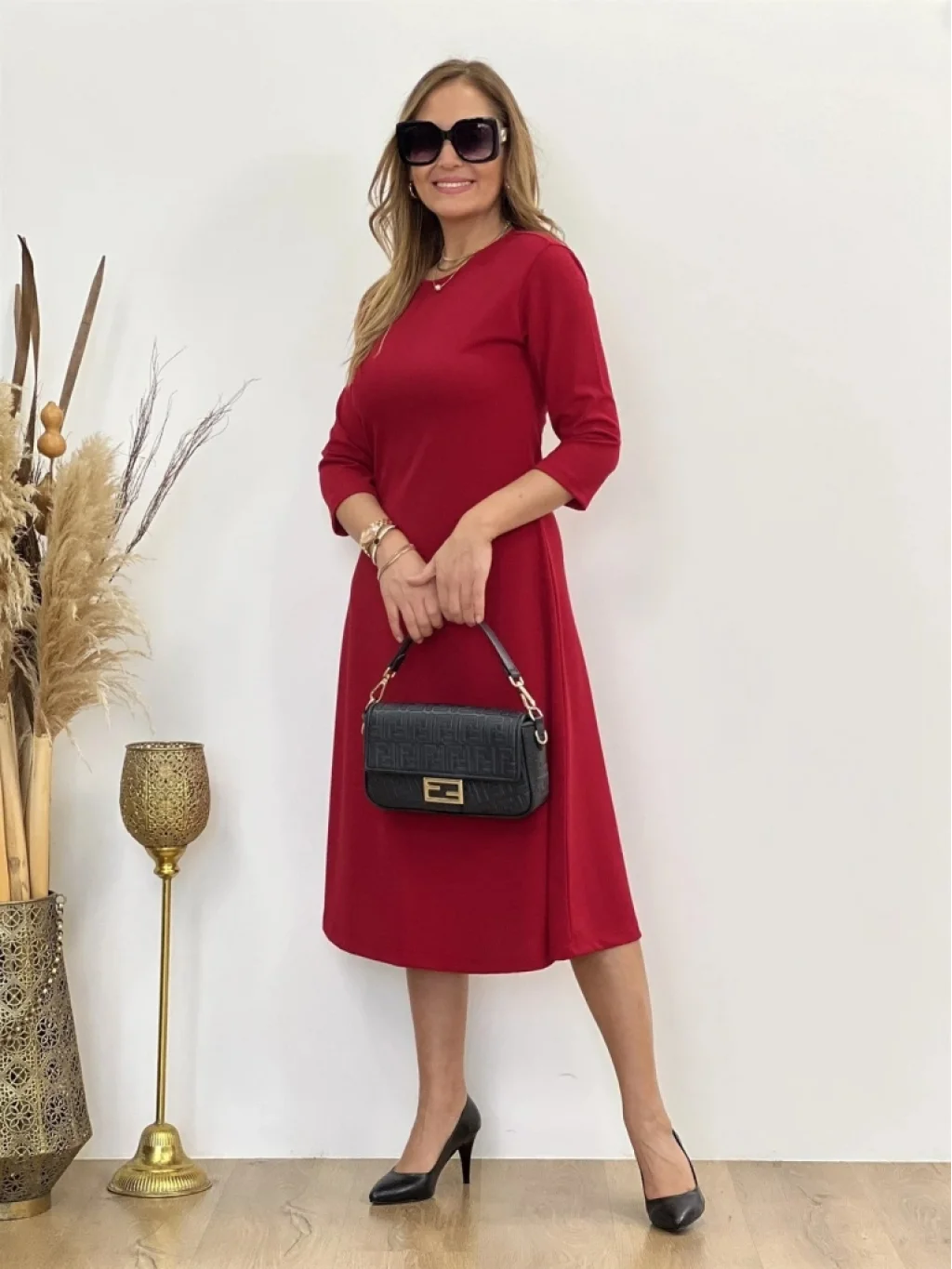 Kadın Uzun Kollu Bisiklet Yaka Midi Ithal Krep Elbise