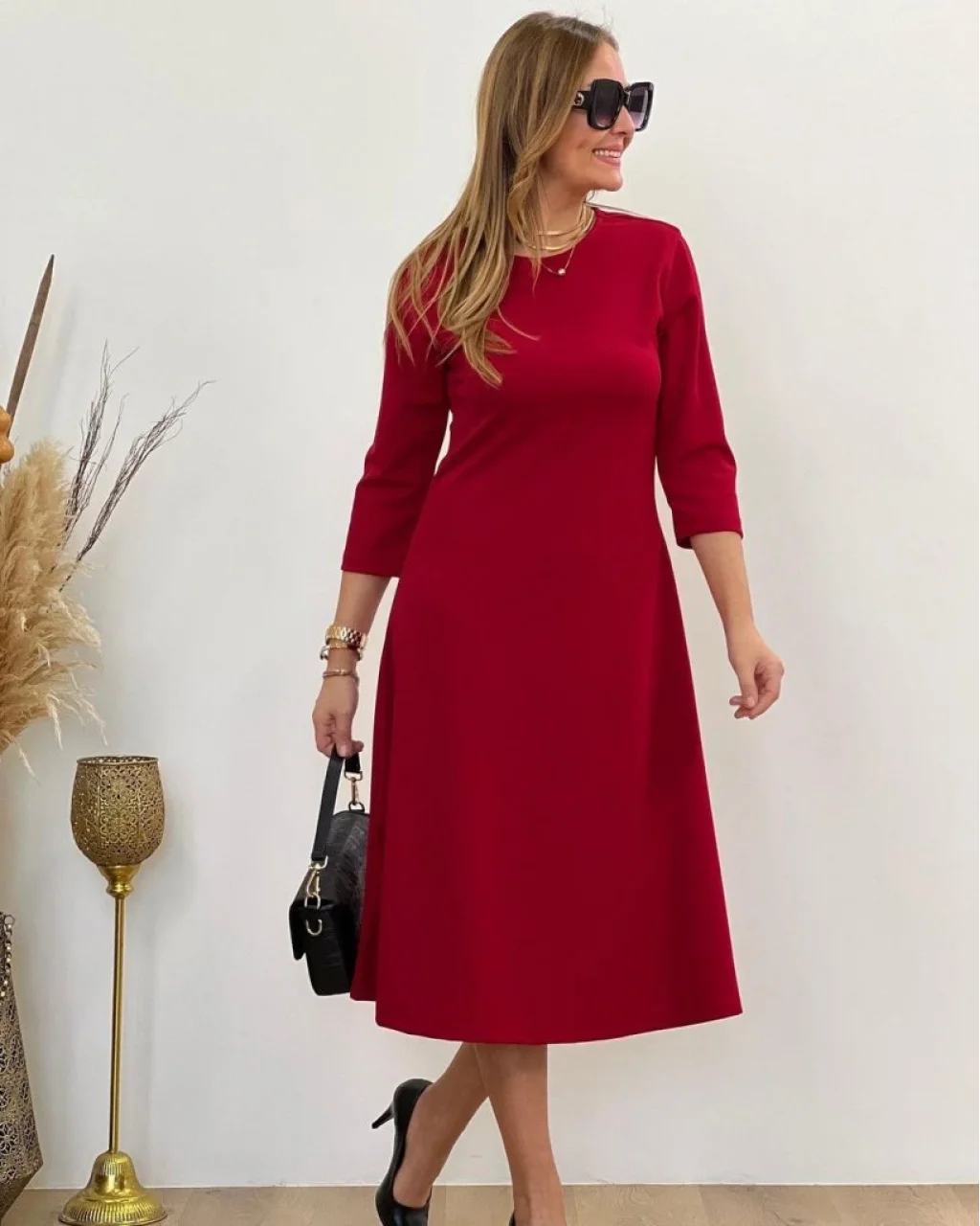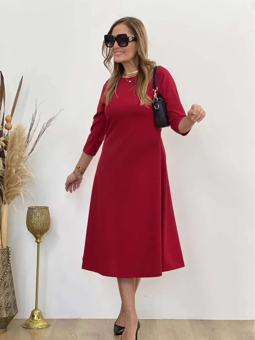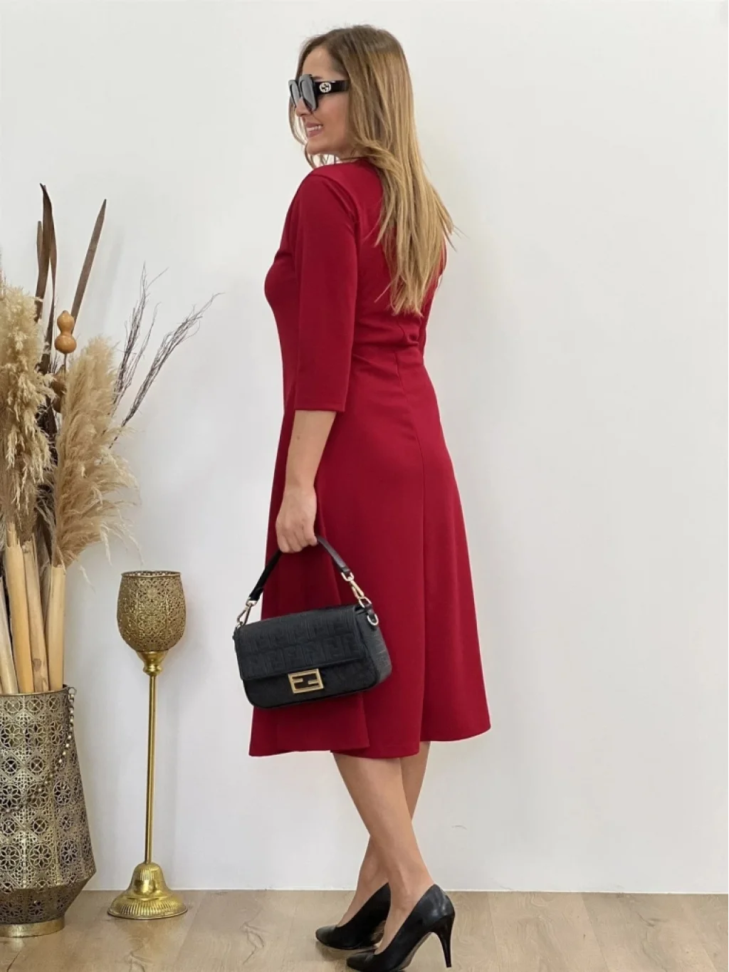 Kadın Uzun Kollu Bisiklet Yaka Midi Ithal Krep Elbise