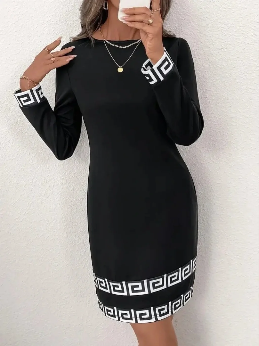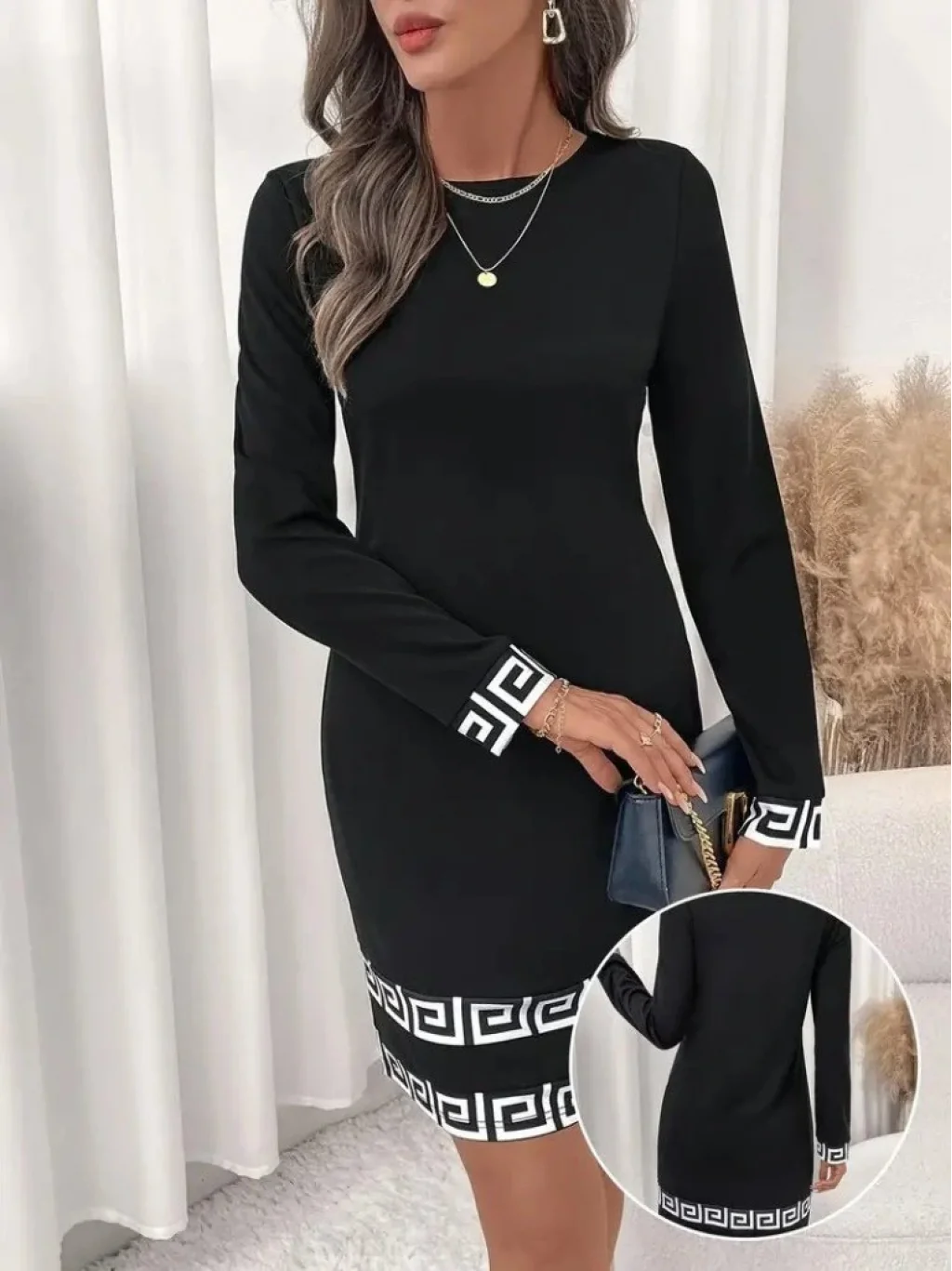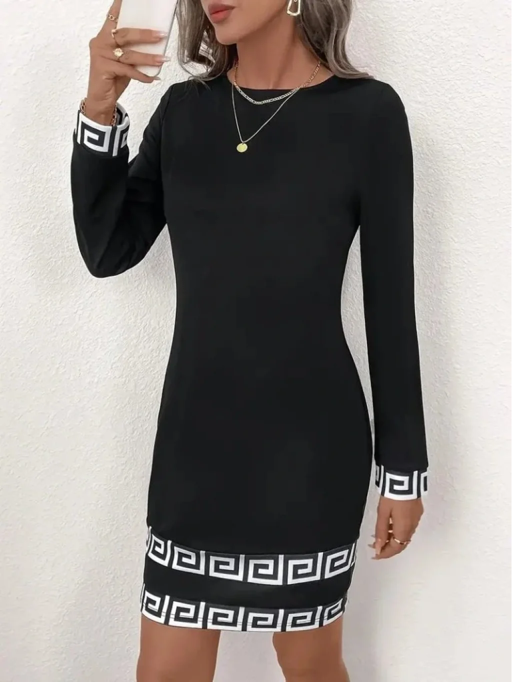 Kadın Uzun Kollu Bisiklet Yaka Mini Ithal Krep Elbise