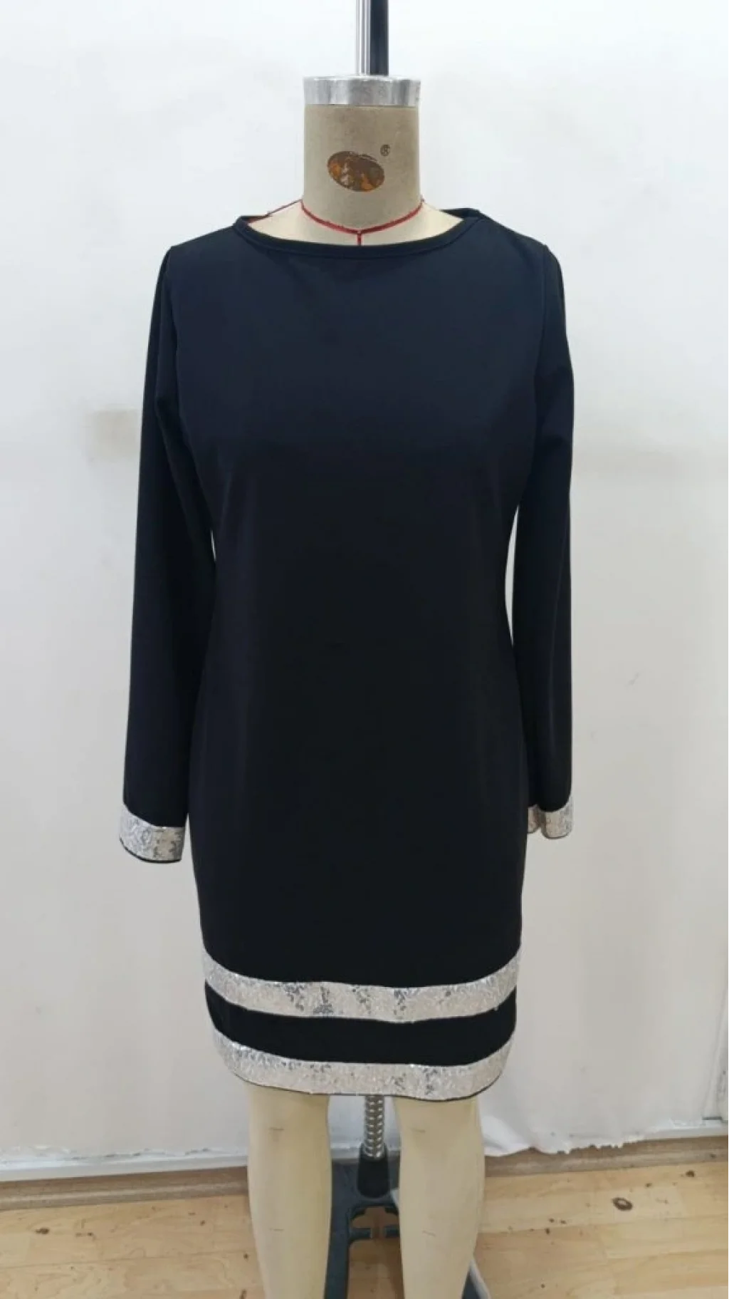 Kadın Uzun Kollu Bisiklet Yaka Mini Ithal Krep Elbise
