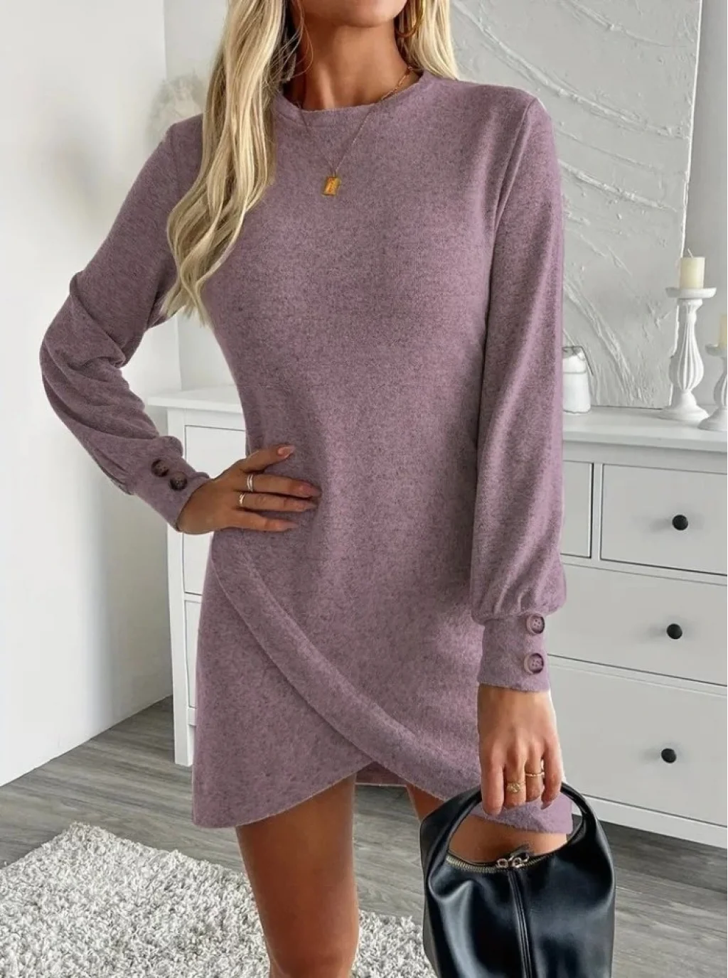 Kadın Uzun Kollu Bisiklet Yaka önden Asimetrik Kesim Detaylı Mini Yumoş Elbise