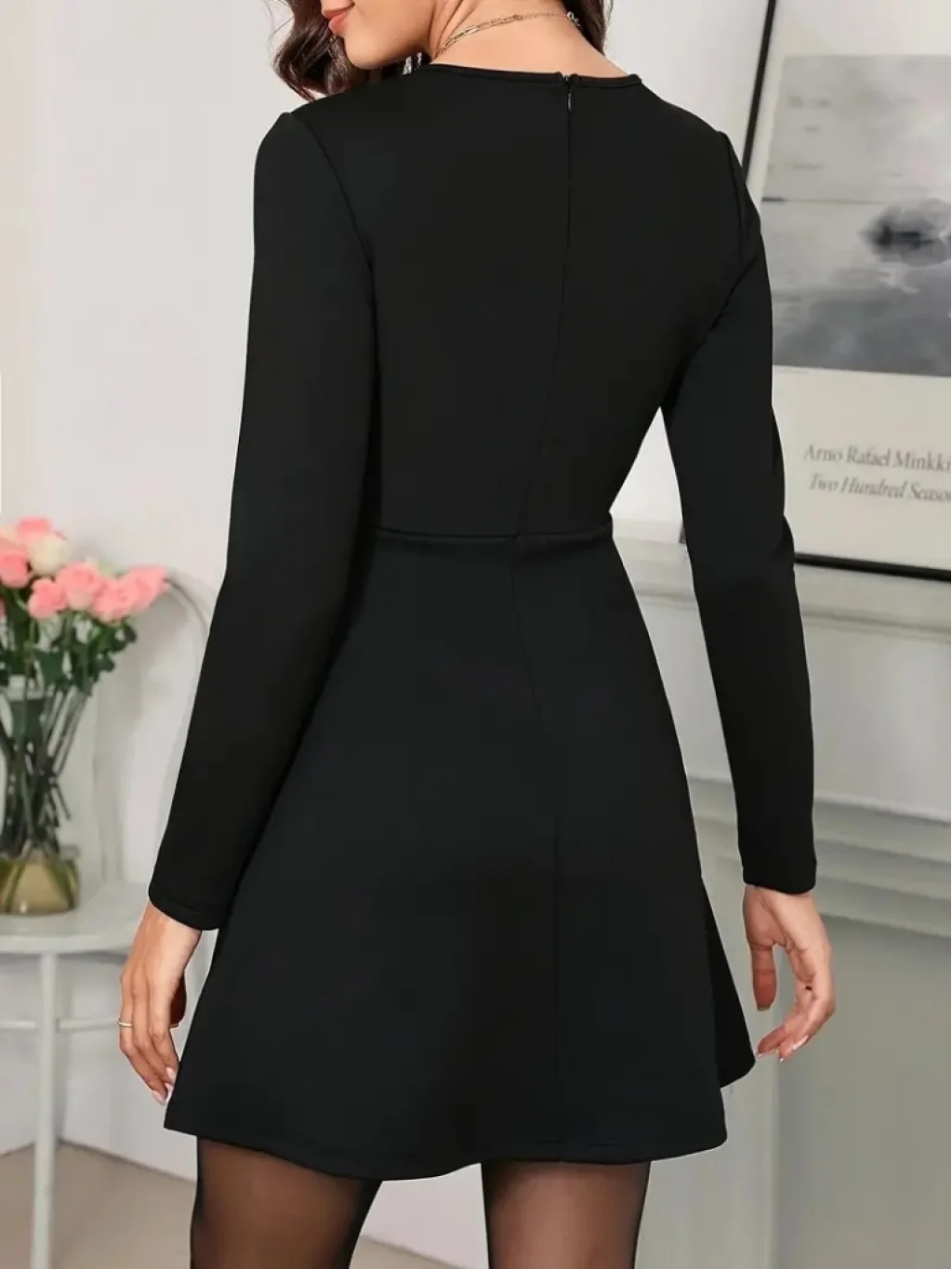 Kadın Uzun Kollu Bisiklet Yaka önden Cepli Kısa Ithal Krep Elbise