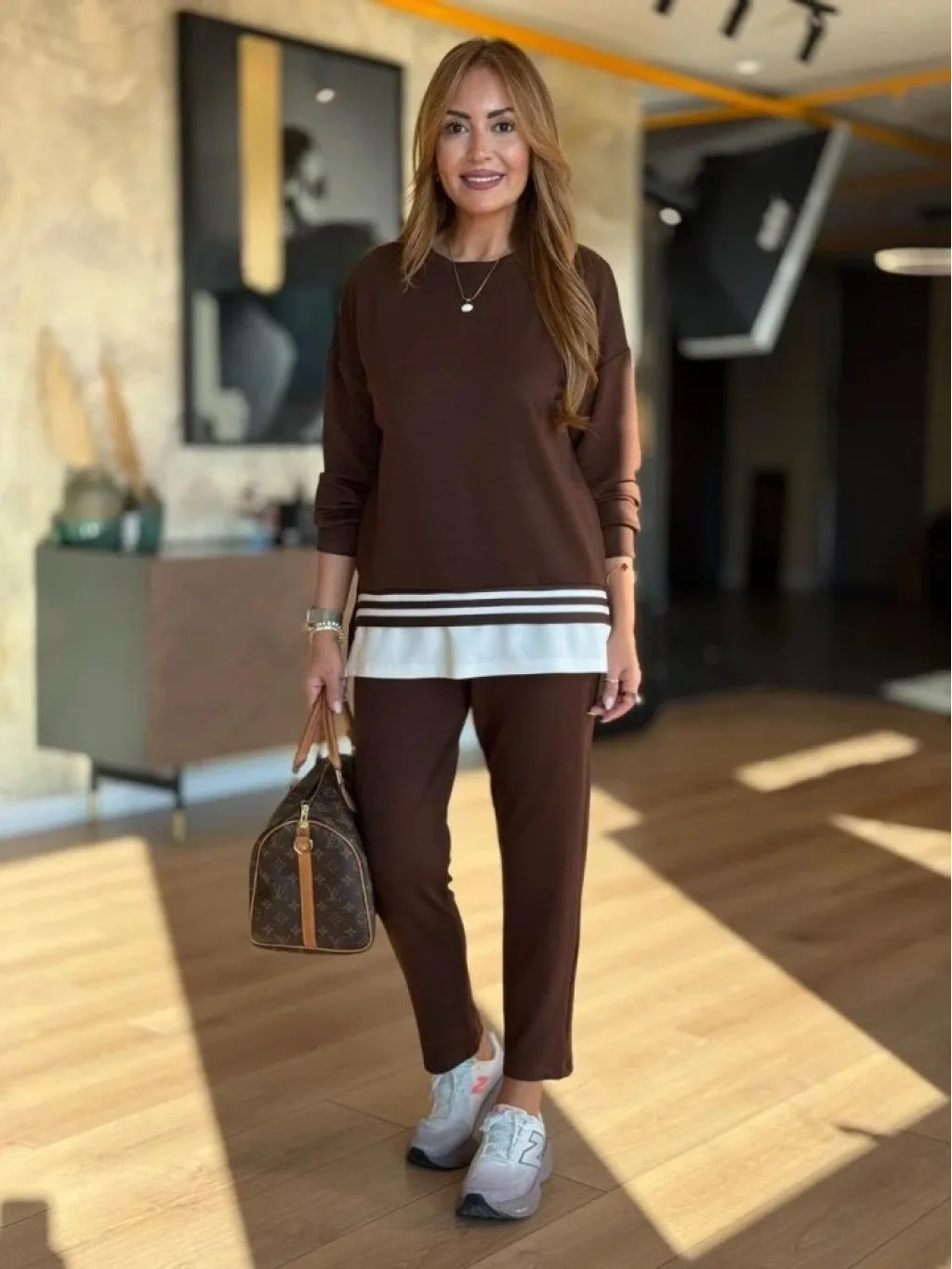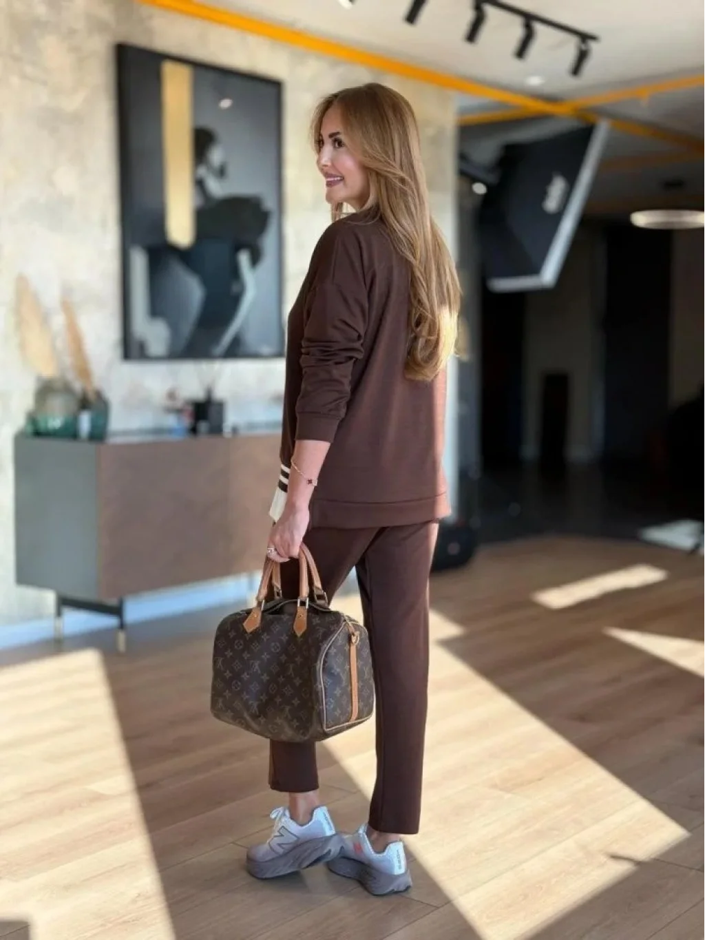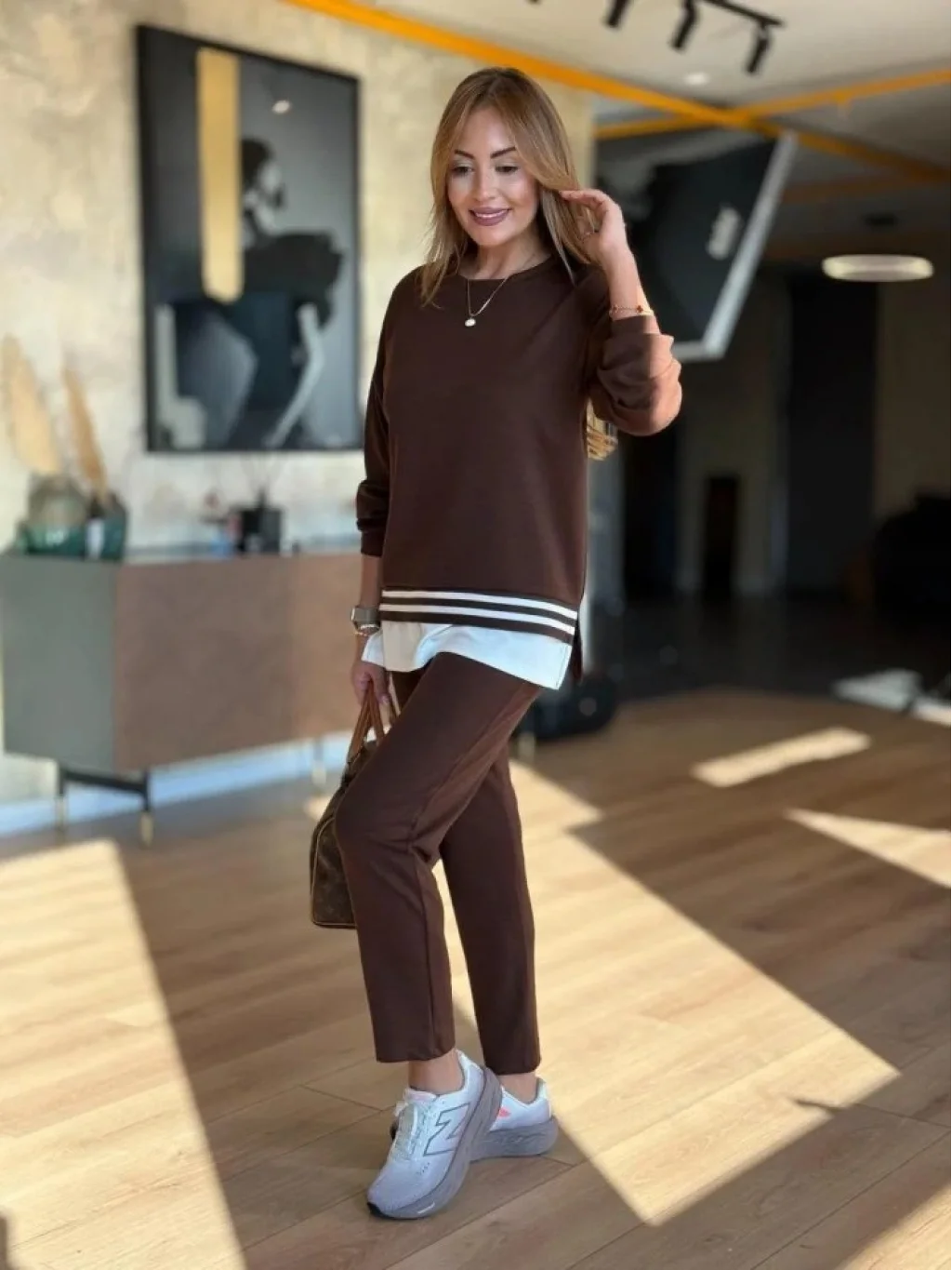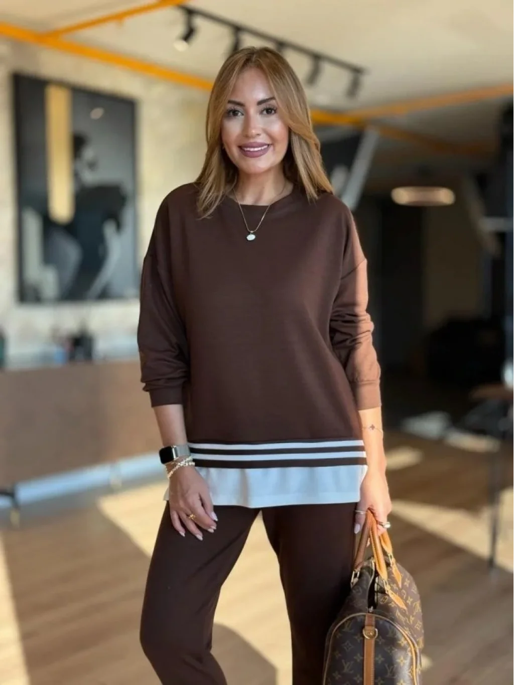 Kadın Uzun Kollu Bisiklet Yaka Ribana Detay Sweat Ve Pantolon Ikili Takım