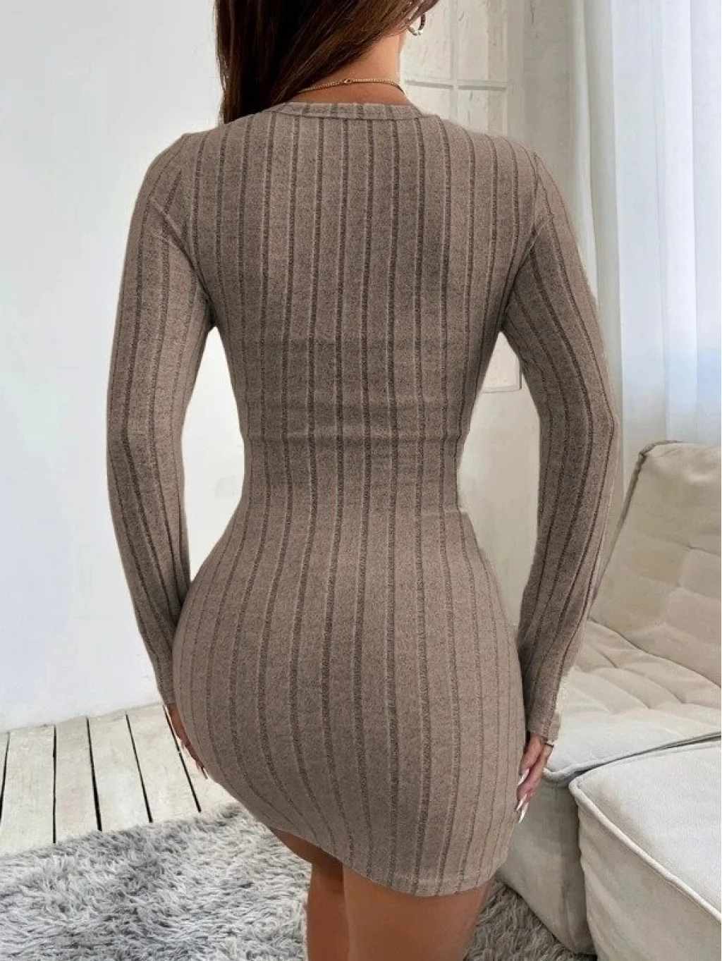 Kadın Uzun Kollu Bisiklet Yaka şardonlu Kalın Fitilli Kaşkorse Mini Boy Elbise