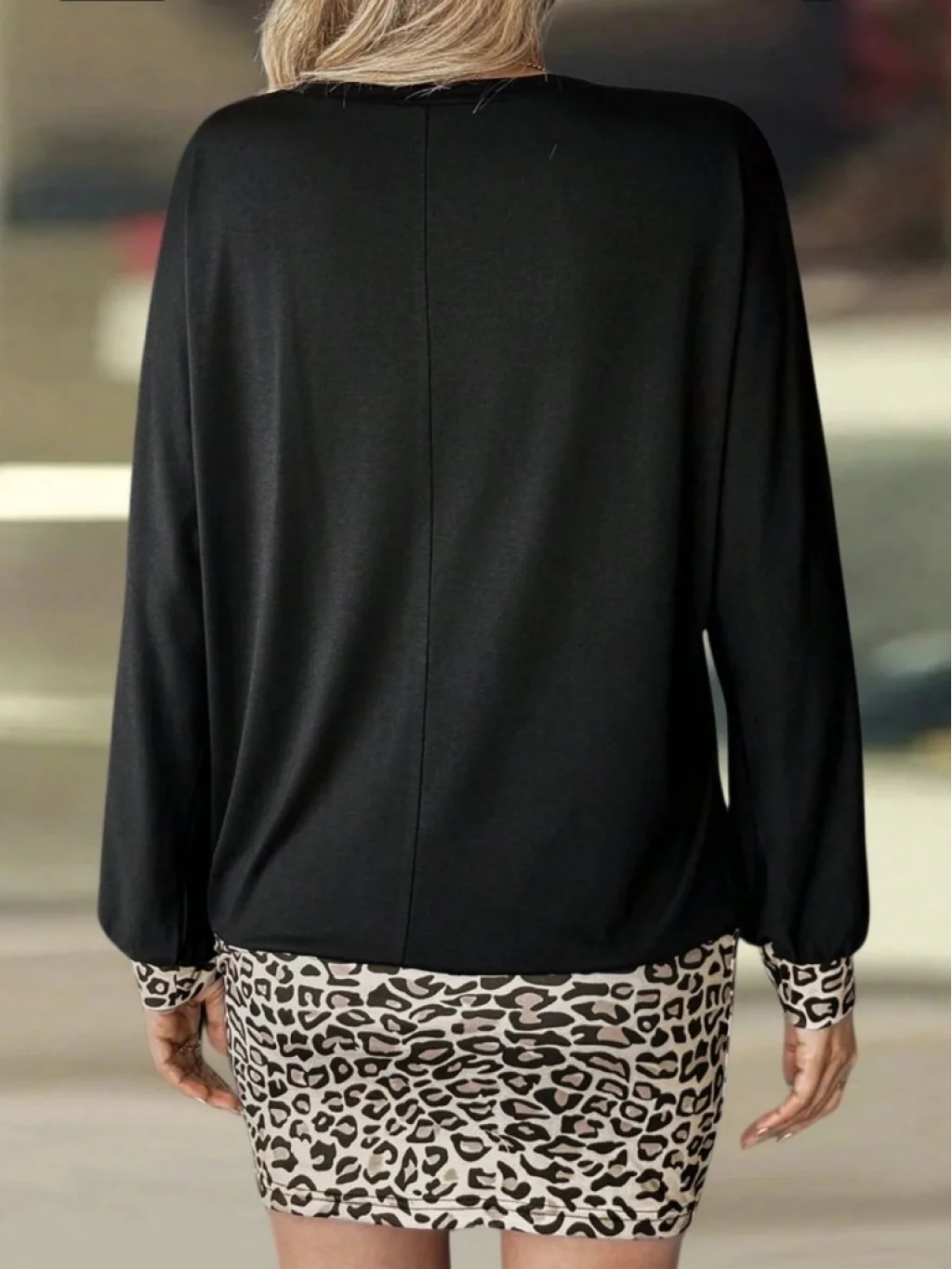 Kadın Uzun Kollu Bisiklet Yaka üst Viskon Iki Iplik Alt Leopar Desenli Mini Elbise