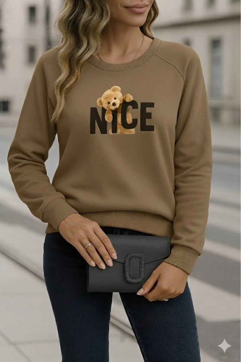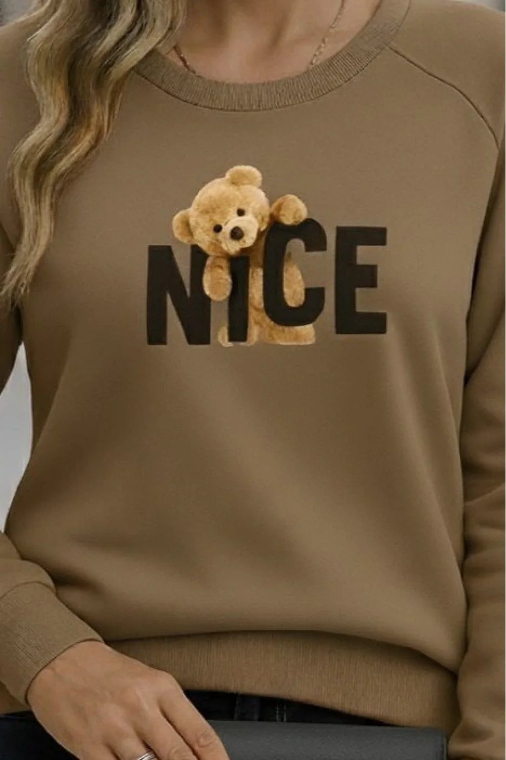Kadın Uzun Kollu Bisiklet Yaka Viskon Iki Iplik Bluz