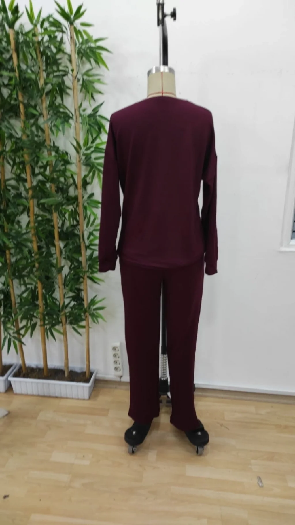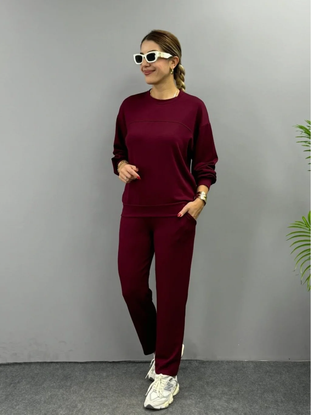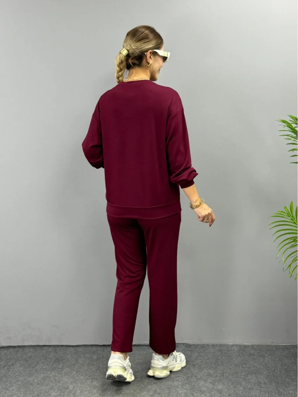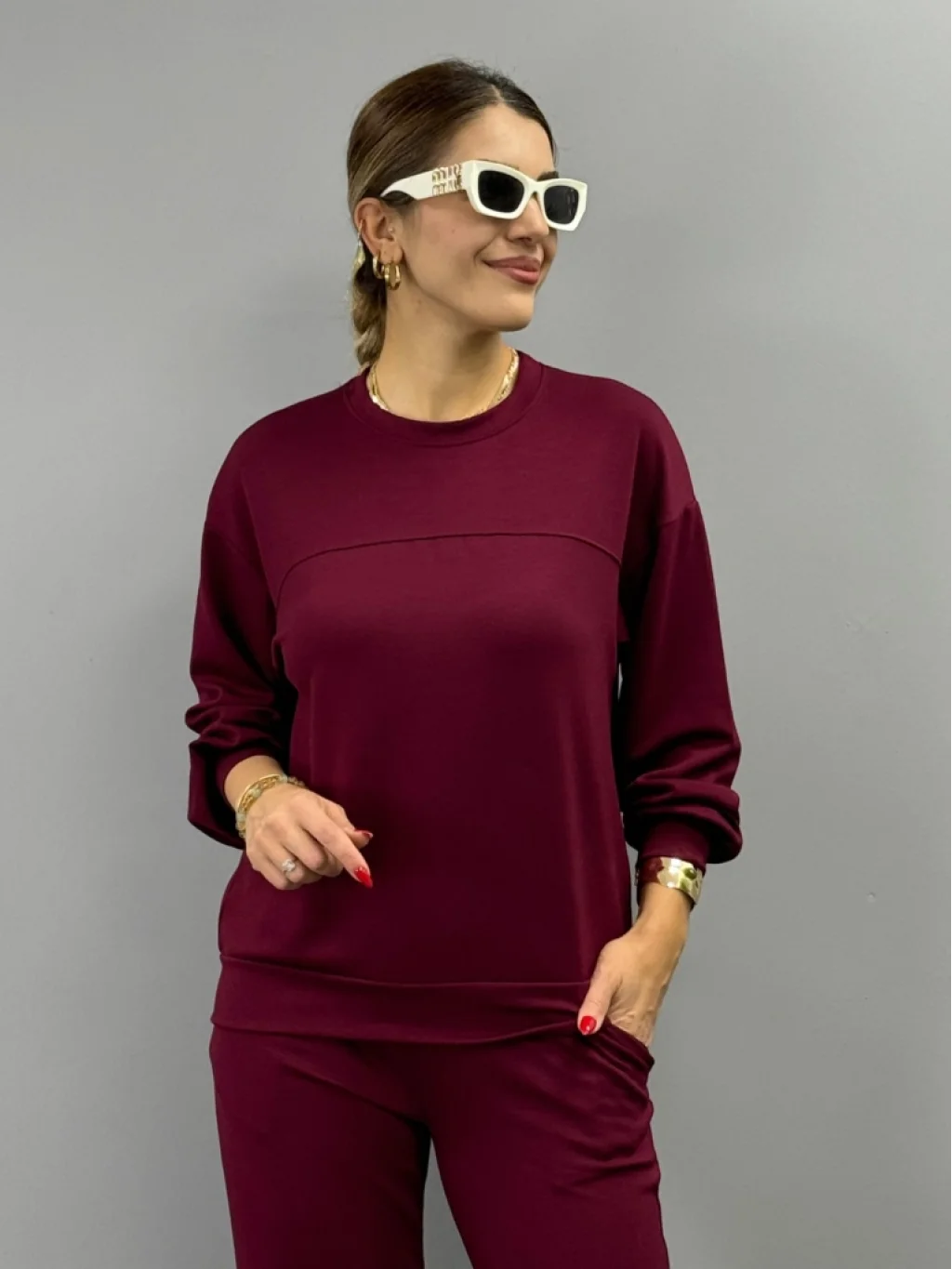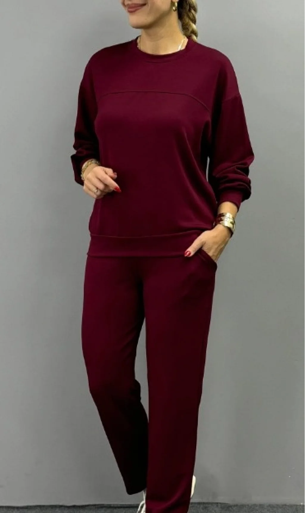 Kadın Uzun Kollu Bisiklet Yaka Viskon Iki Iplik Bluz Ve Pantolon Ikili Takım