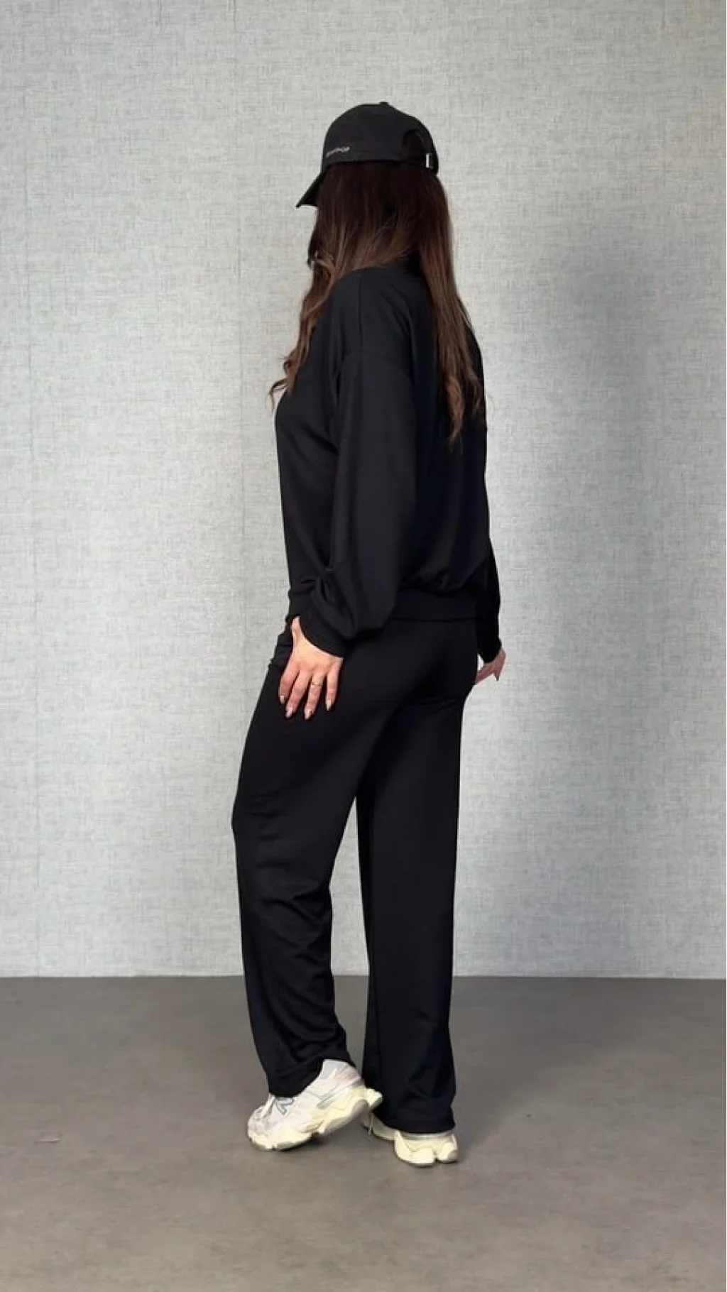Kadın Uzun Kollu Bisiklet Yaka Viskon Iki Iplik Bluz Ve Pantolon Ikili Takım
