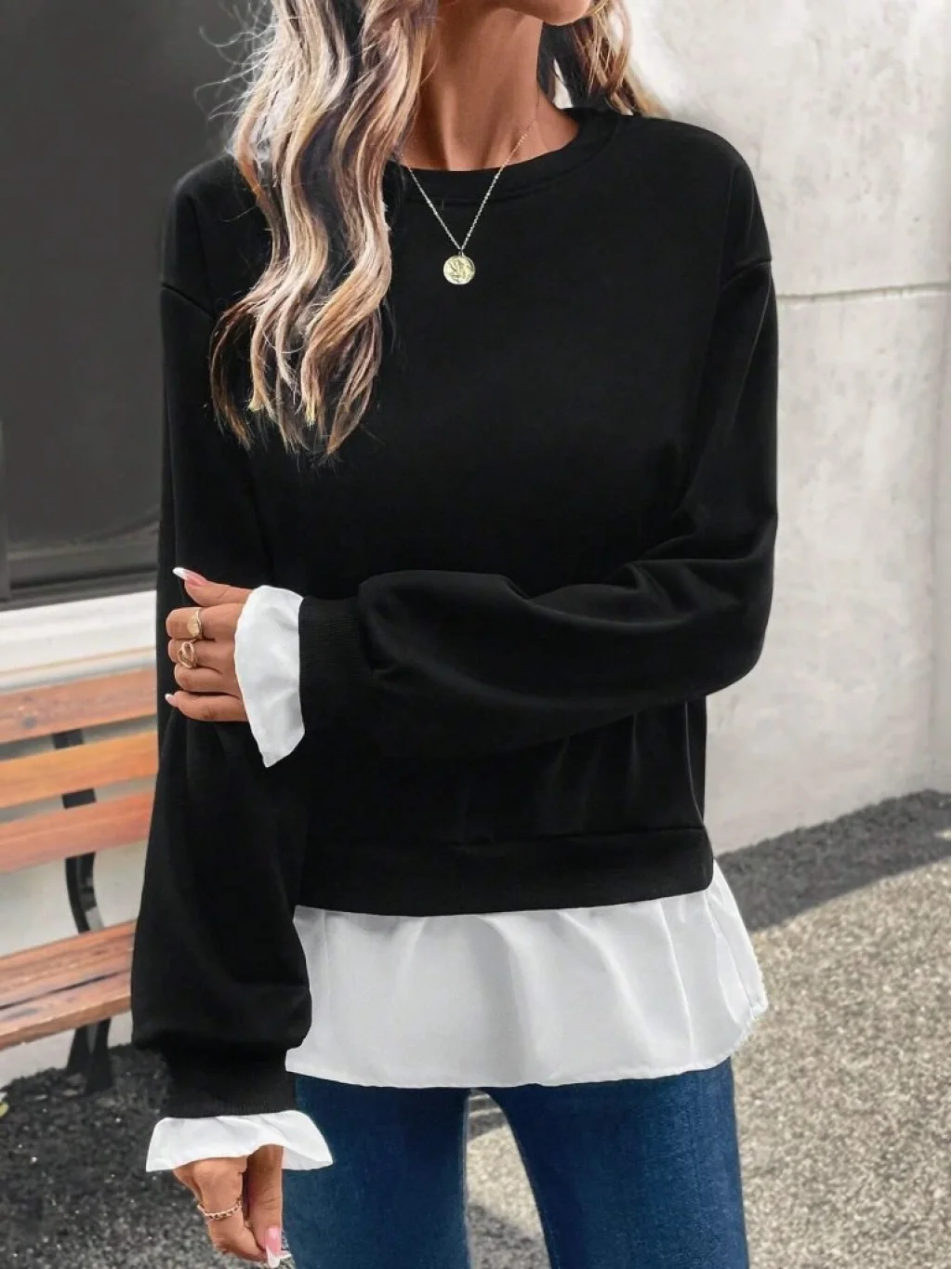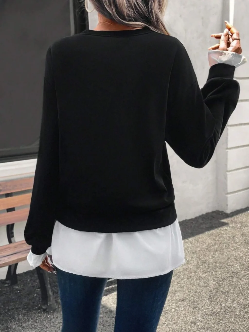 Kadın Uzun Kollu Bisiklet Yaka Viskon Iki Iplik Ve Etek Ucu Trikoton Bluz