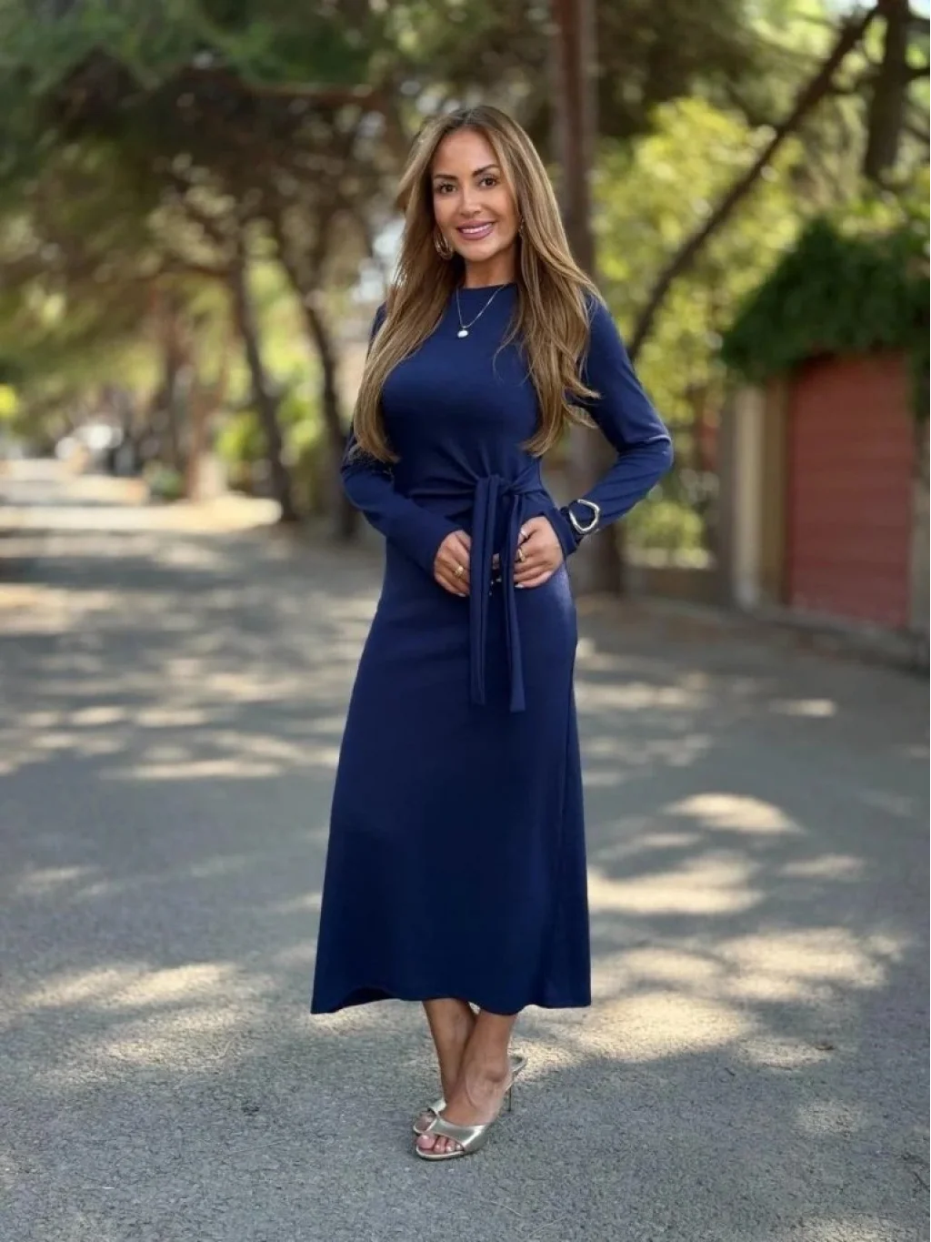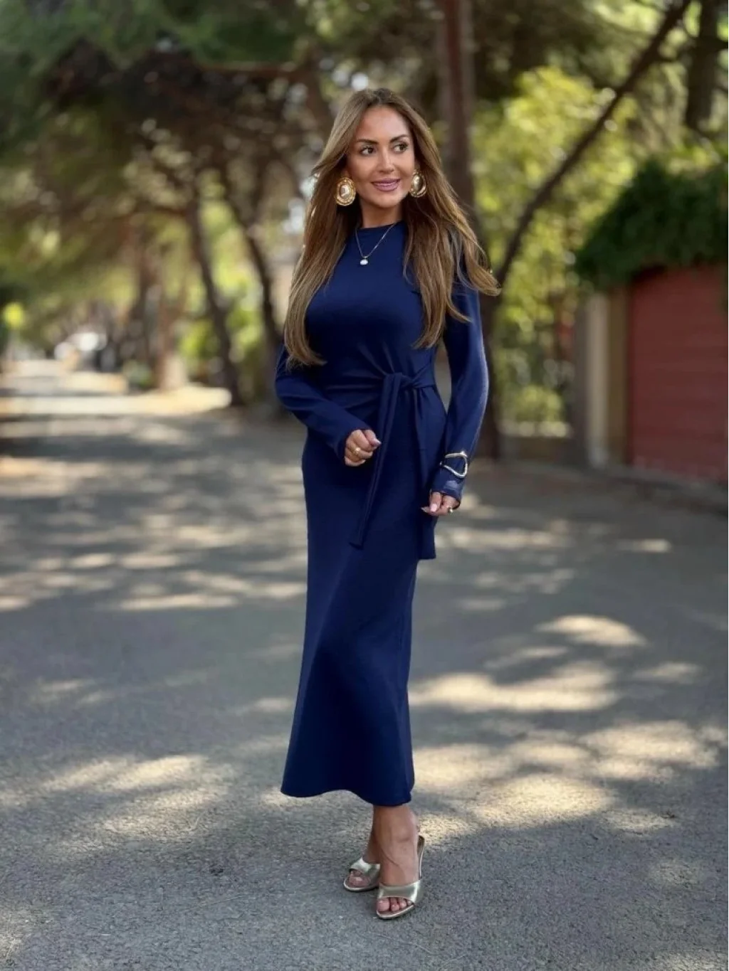 Kadın Uzun Kollu Bisiklet Yaka Yandan Bağlamalı Uzun Modal Elbise