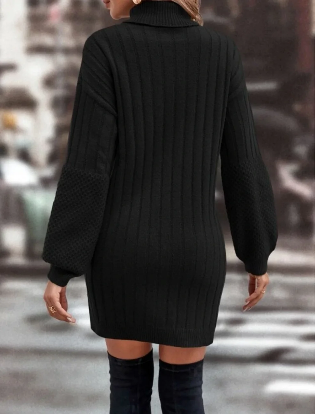 Kadın Uzun Kollu Boğazlı Uzun Balon Kol Triko Mini Elbise
