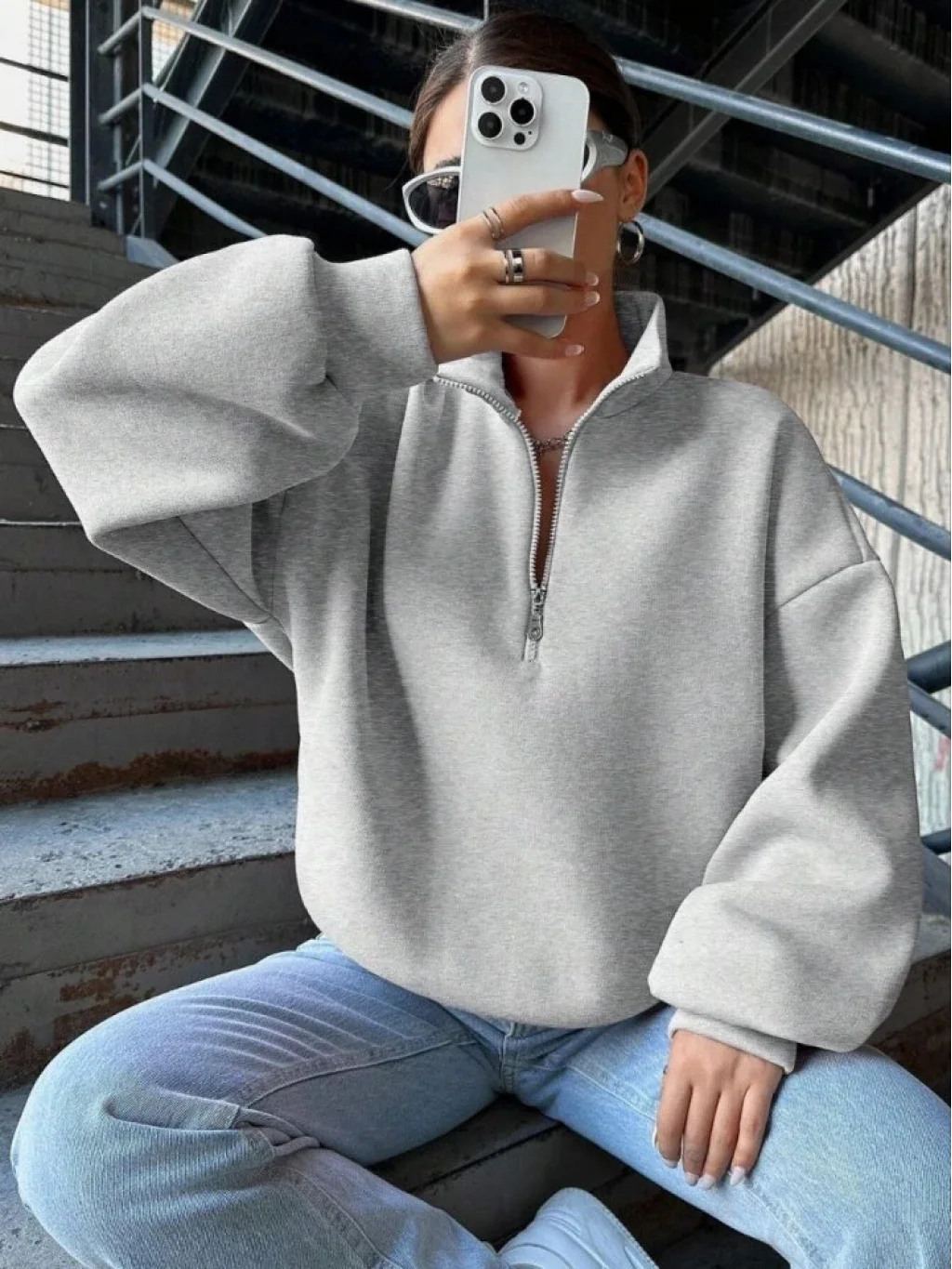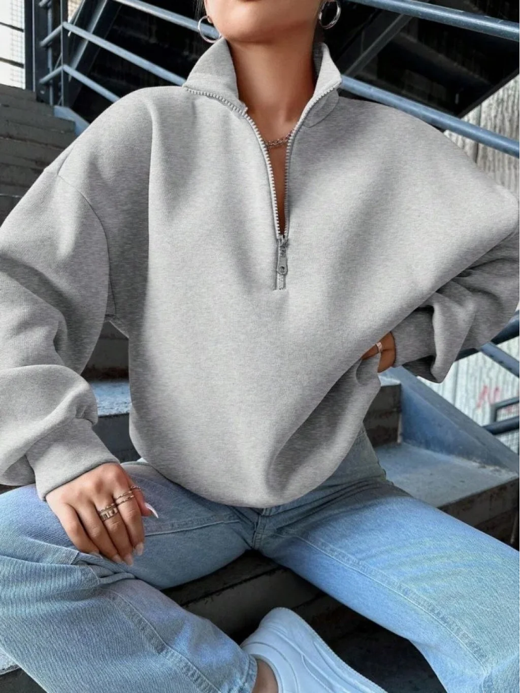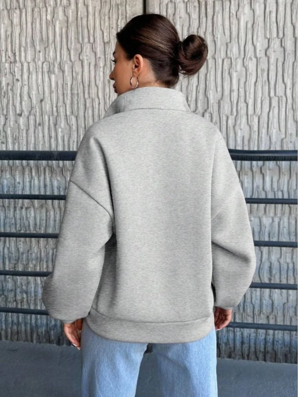 Kadın Uzun Kollu Boğazlı Yaka Fermuar Detay üç Iplik şardonlu Sweat
