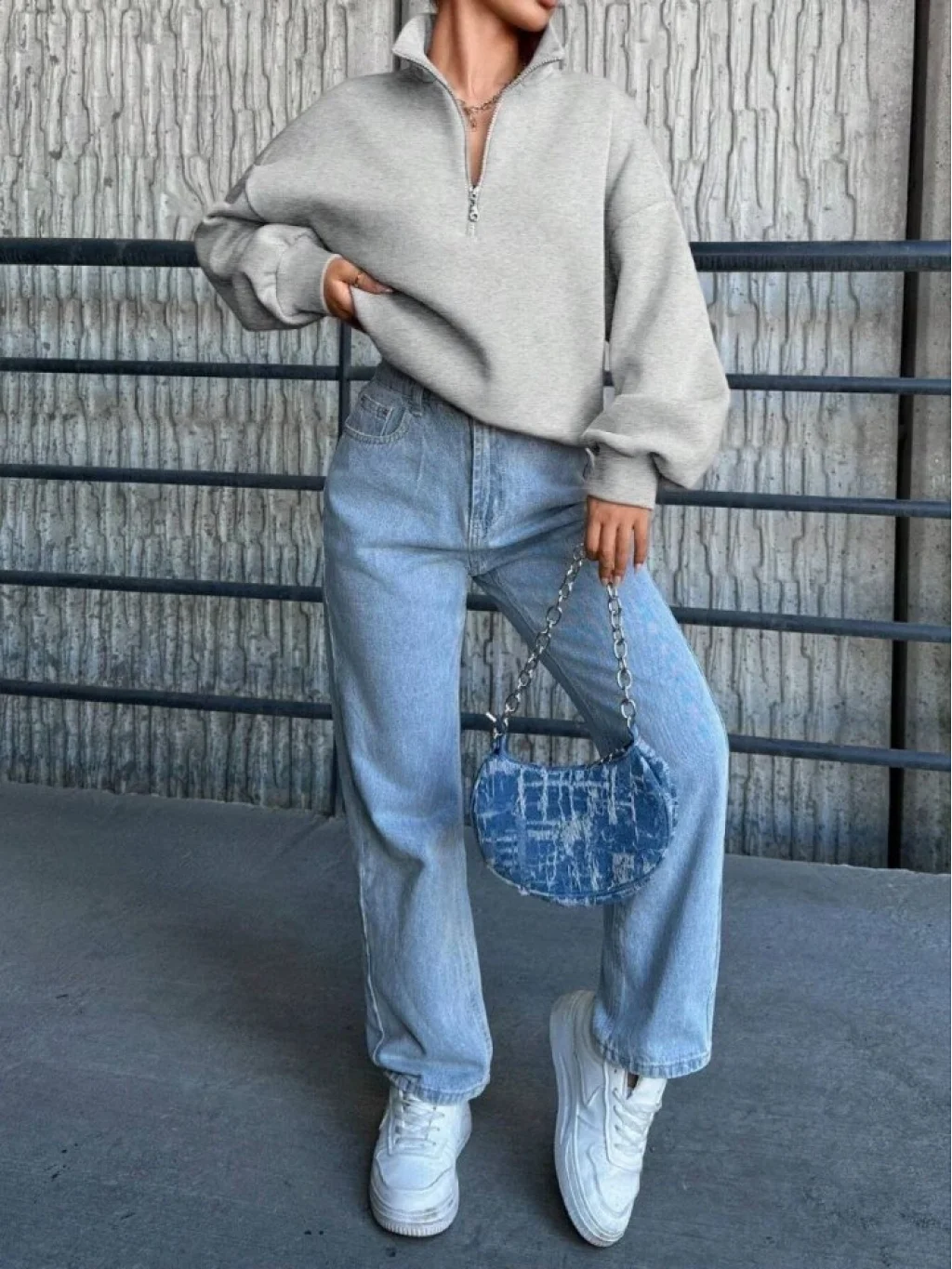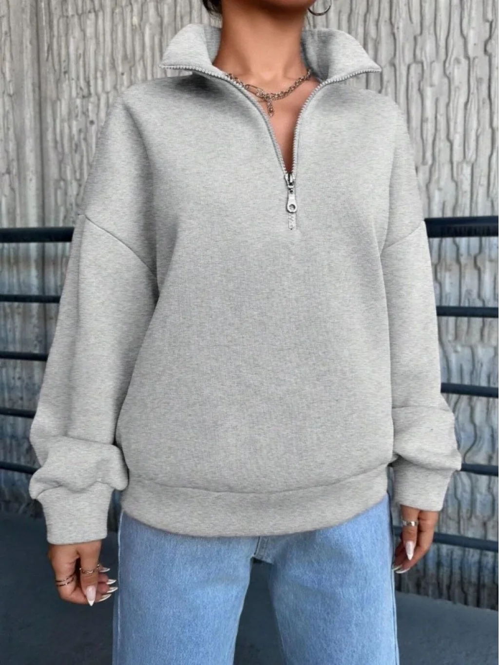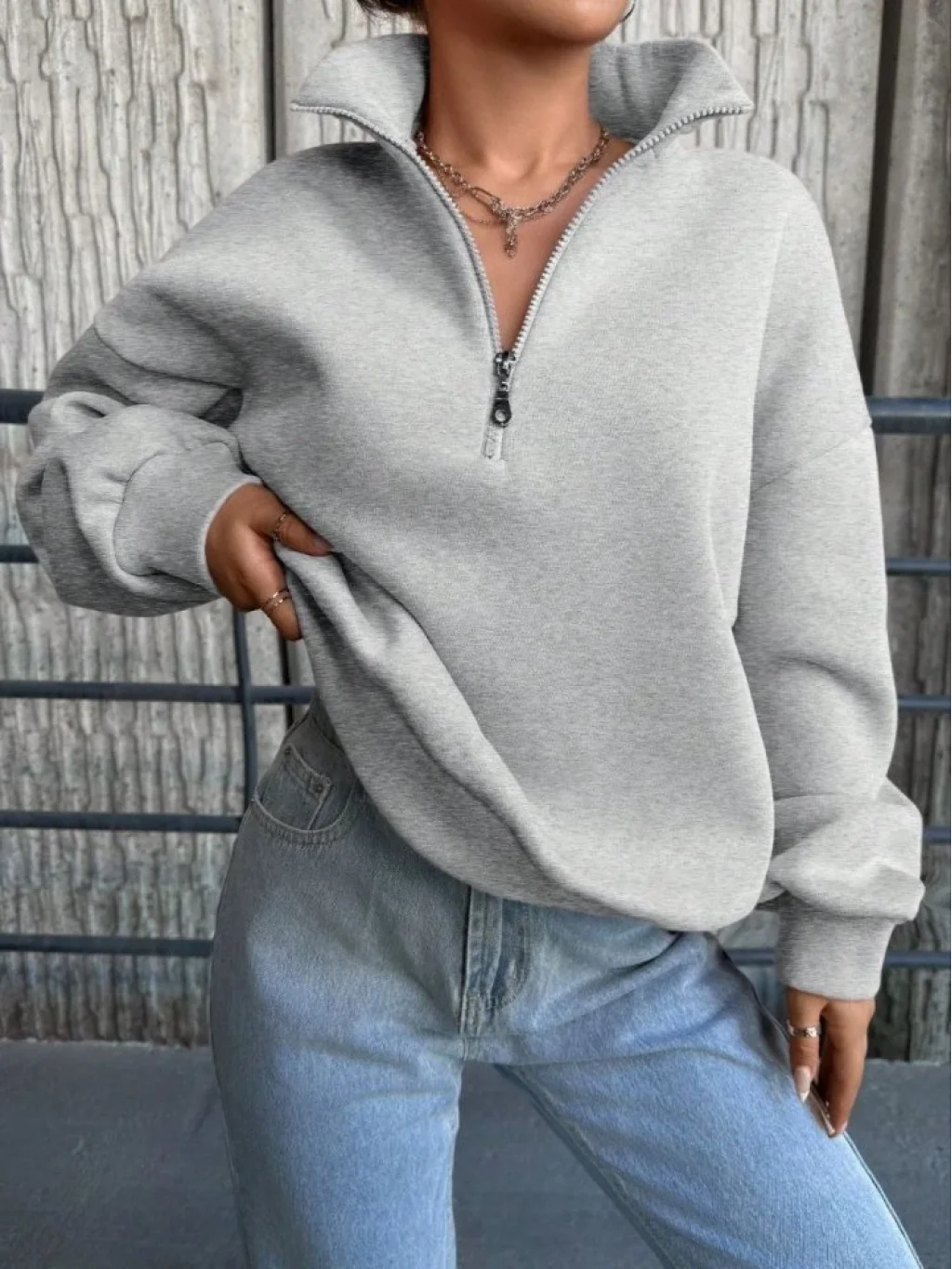Kadın Uzun Kollu Boğazlı Yaka Fermuar Detay üç Iplik şardonlu Sweat