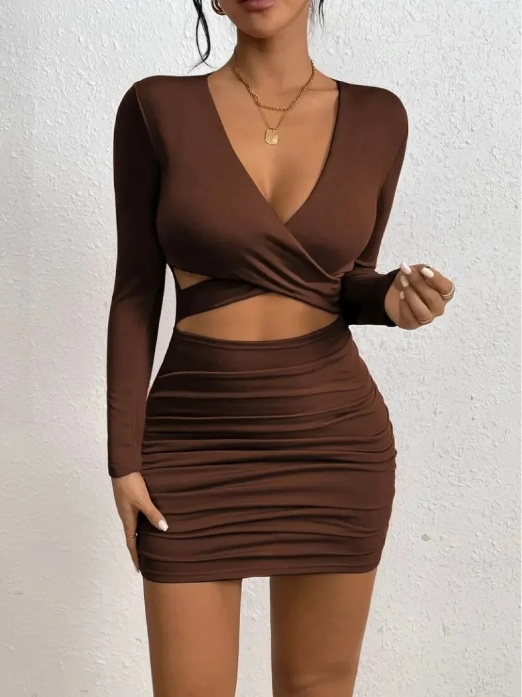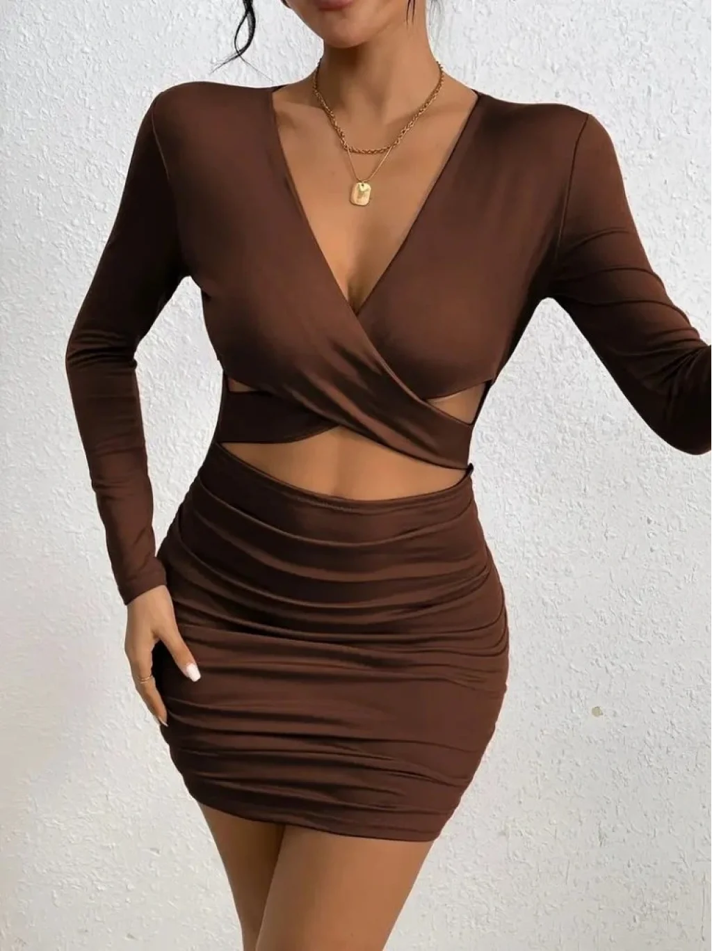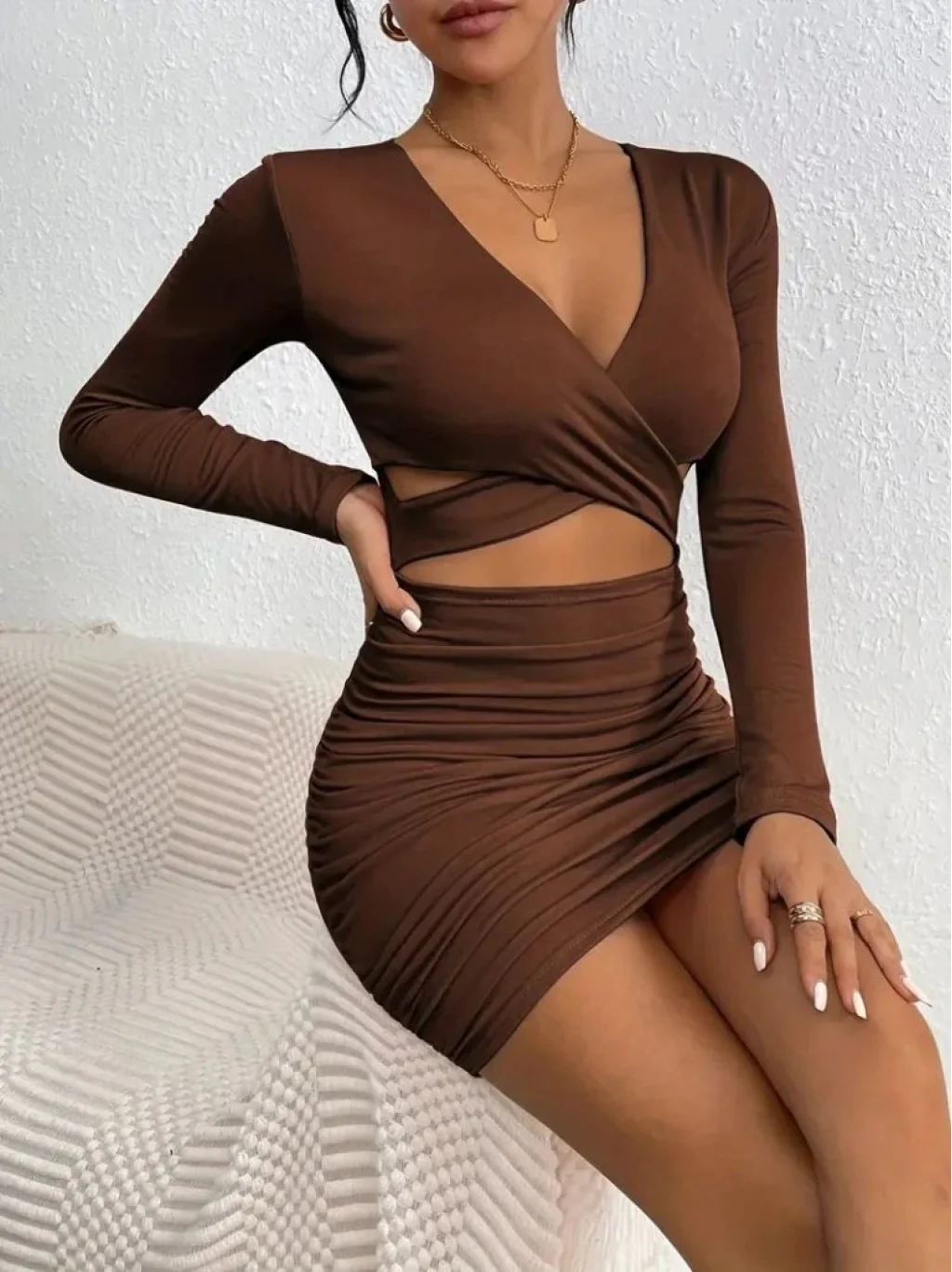 Kadın Uzun Kollu çapraz Dekolte Detaylı Mini Sandy Elbise