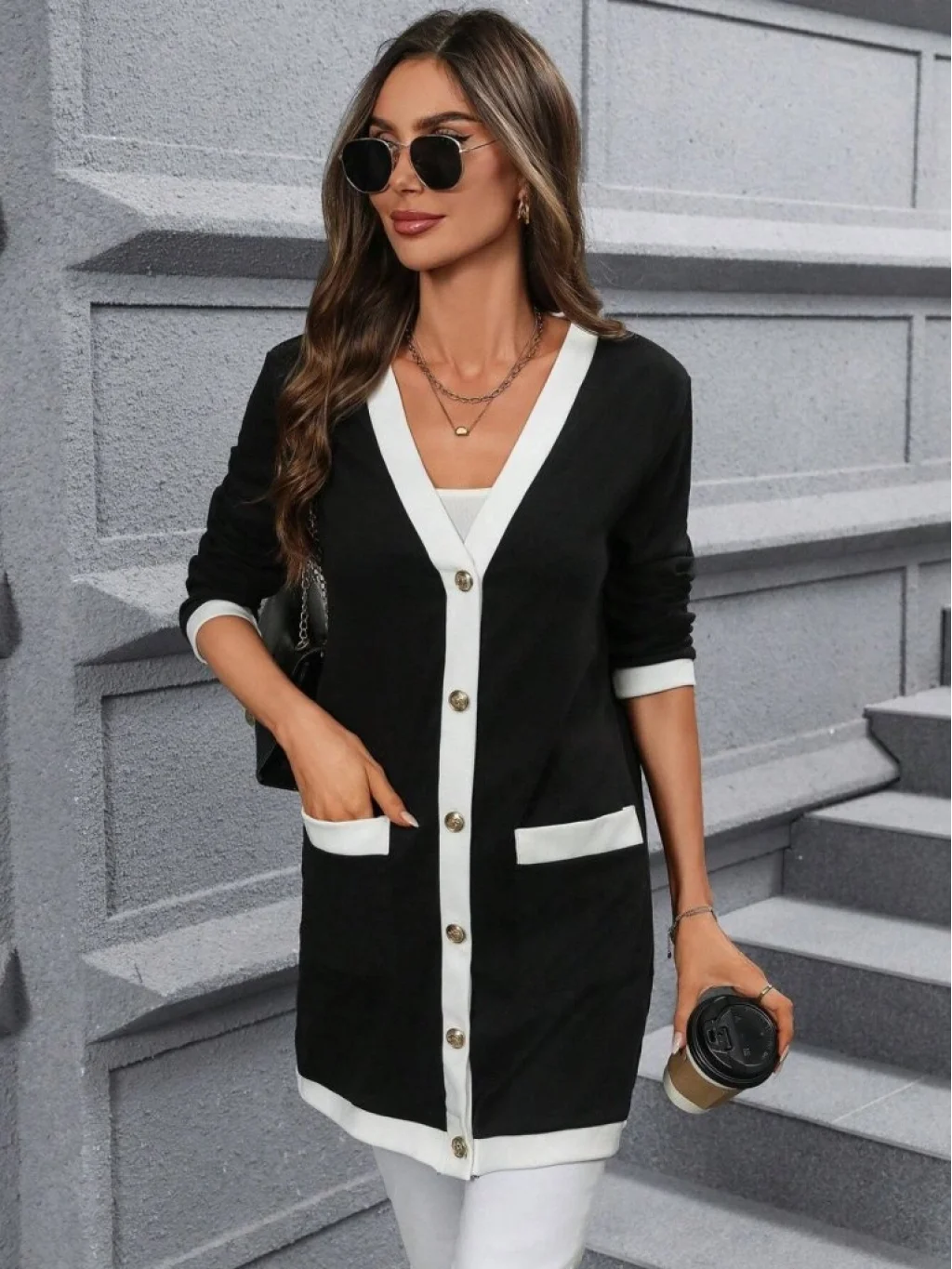 Kadın Uzun Kollu Cepli önden Düğmeli Uzun Modal Ceket