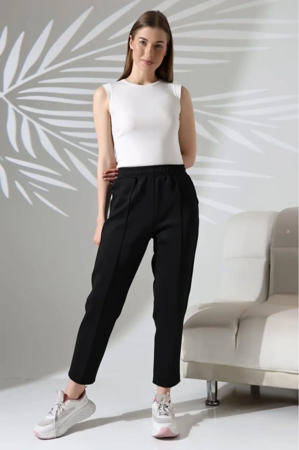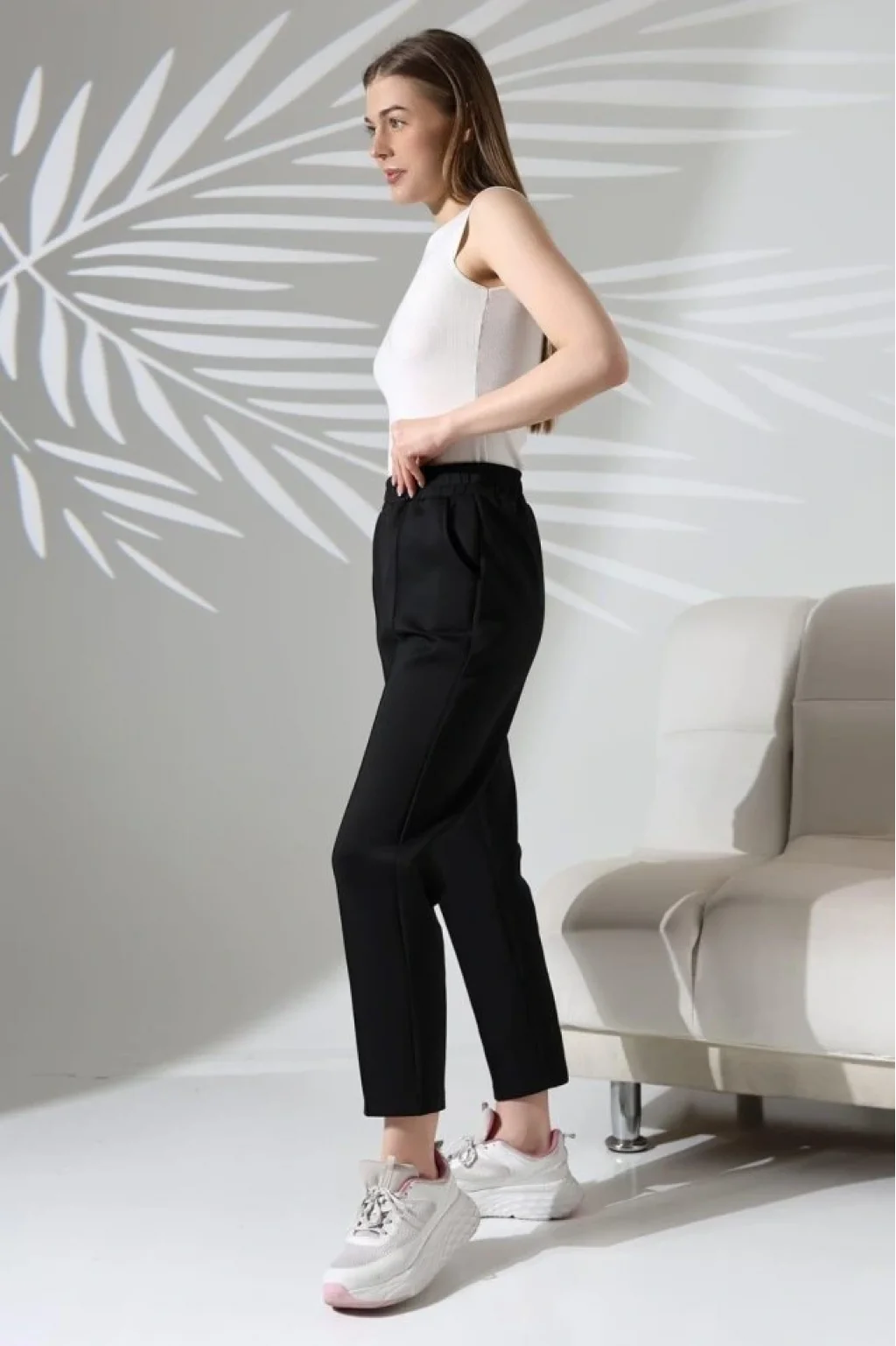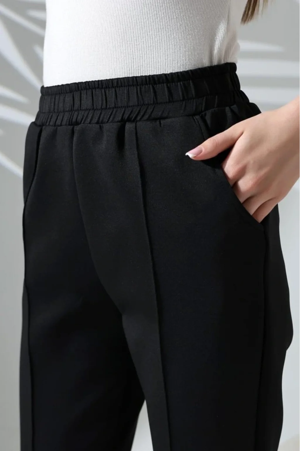 Kadın Uzun Kollu Dalıç Kumaş Cep Detay Beli Lastikli ütüsüz Pantolon