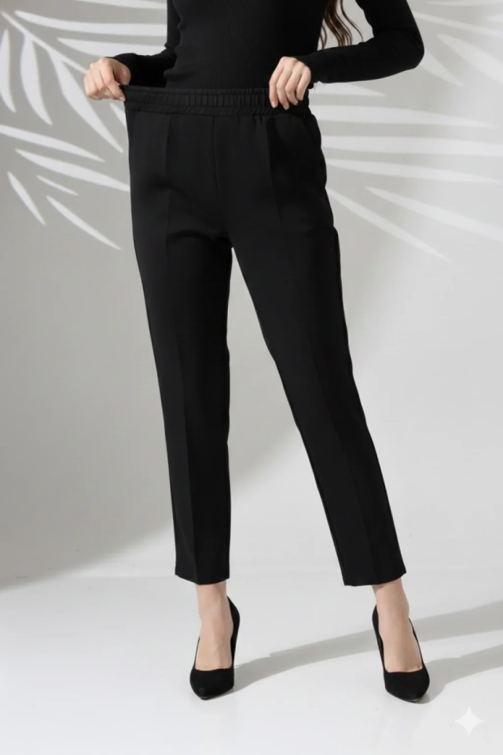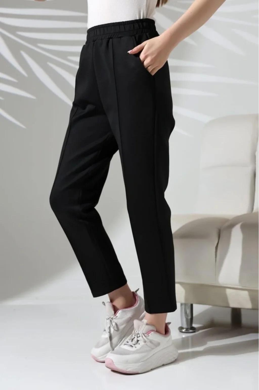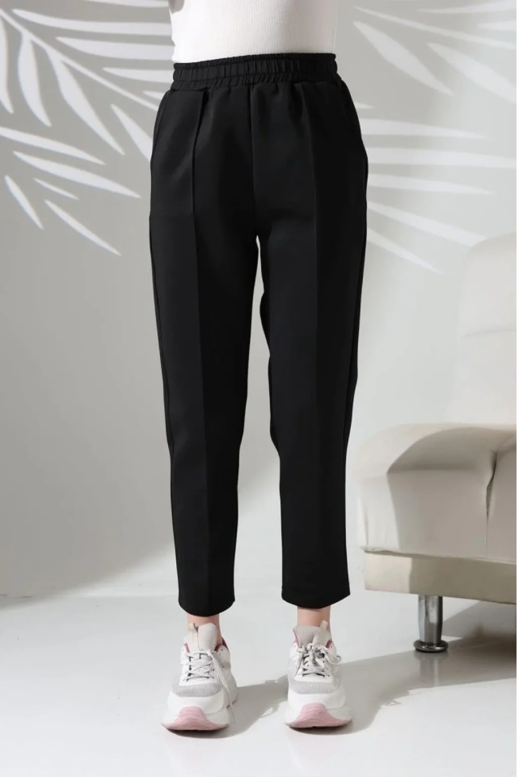 Kadın Uzun Kollu Dalıç Kumaş Cep Detay Beli Lastikli ütüsüz Pantolon